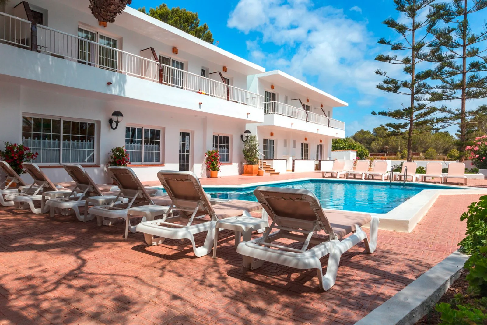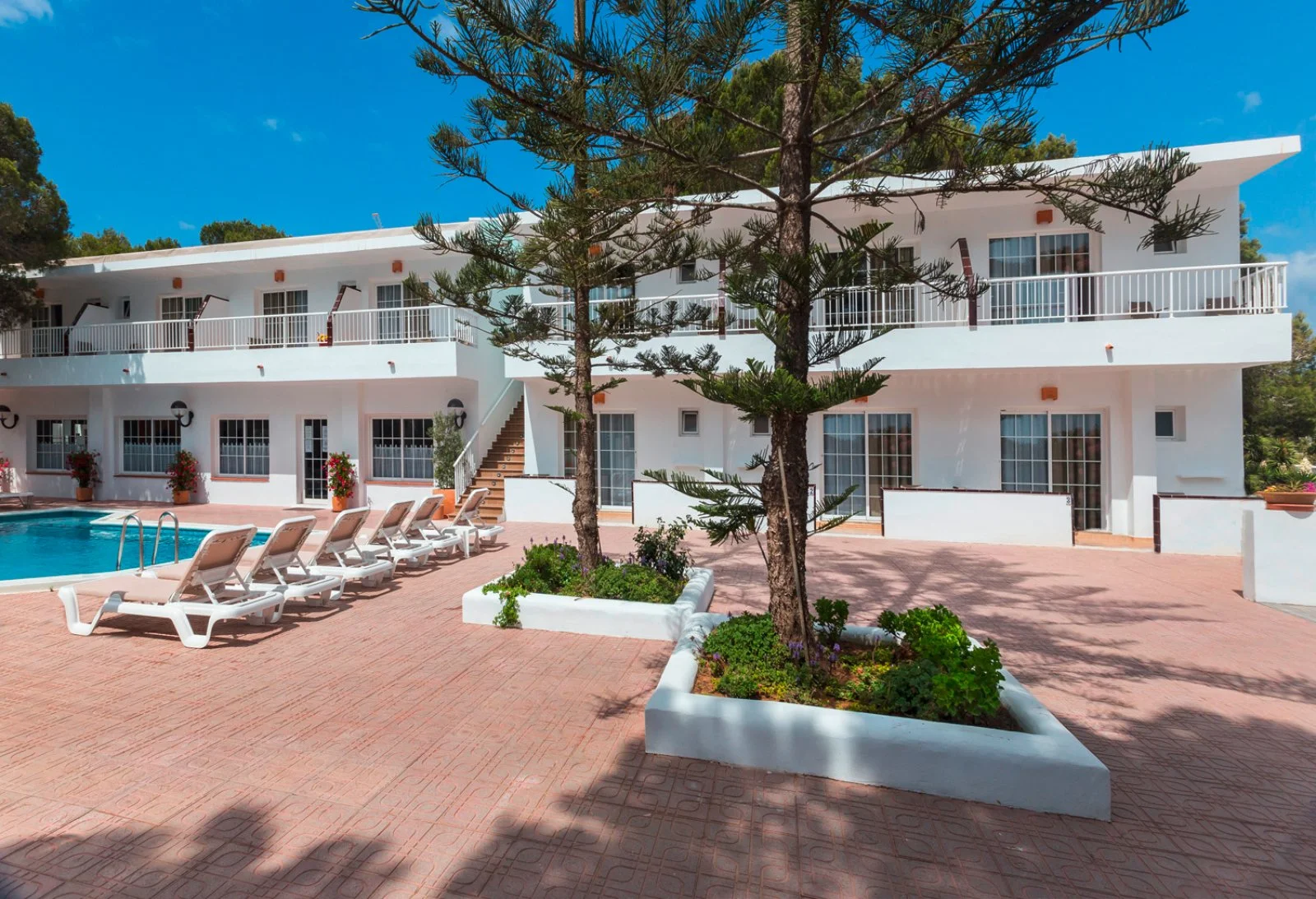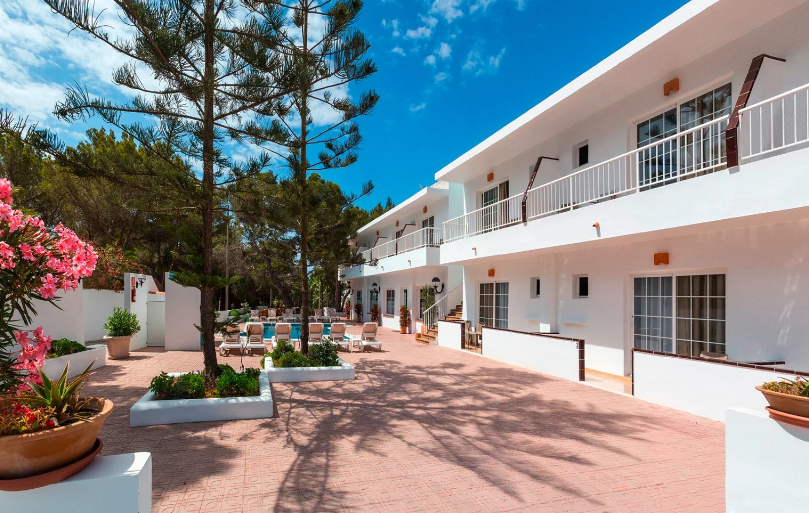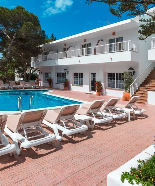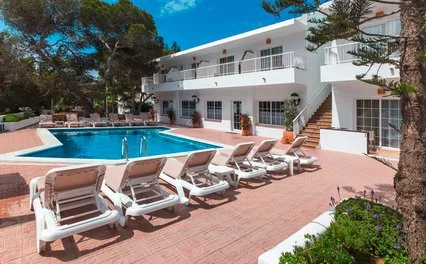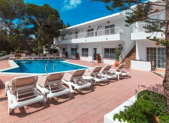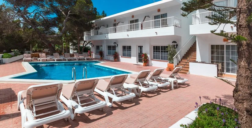 La spiaggia sabbiosa di Playa Mitjorn, la più lunga dell'isola con i suoi 6 km di sabbia alternata a calette con scogli, dista solo 350 m. L’hostal dispone di una piscina con zona separata per bambini circondata da terrazza solarium. Utilizzo di lettini solo in piscina.