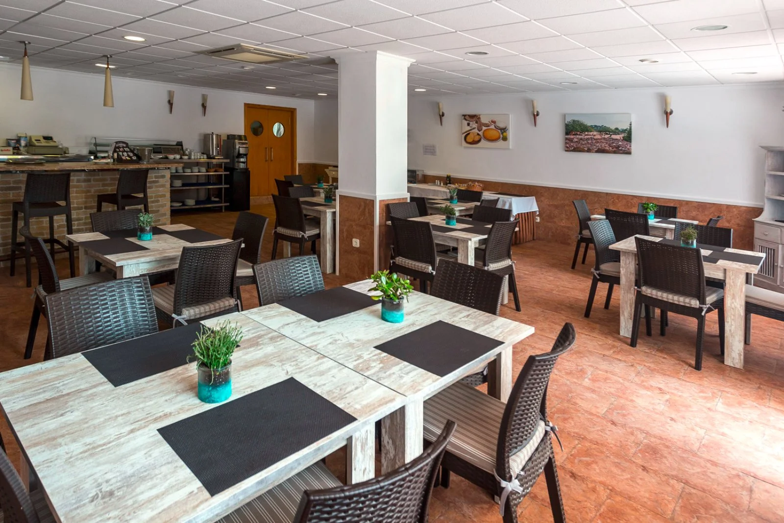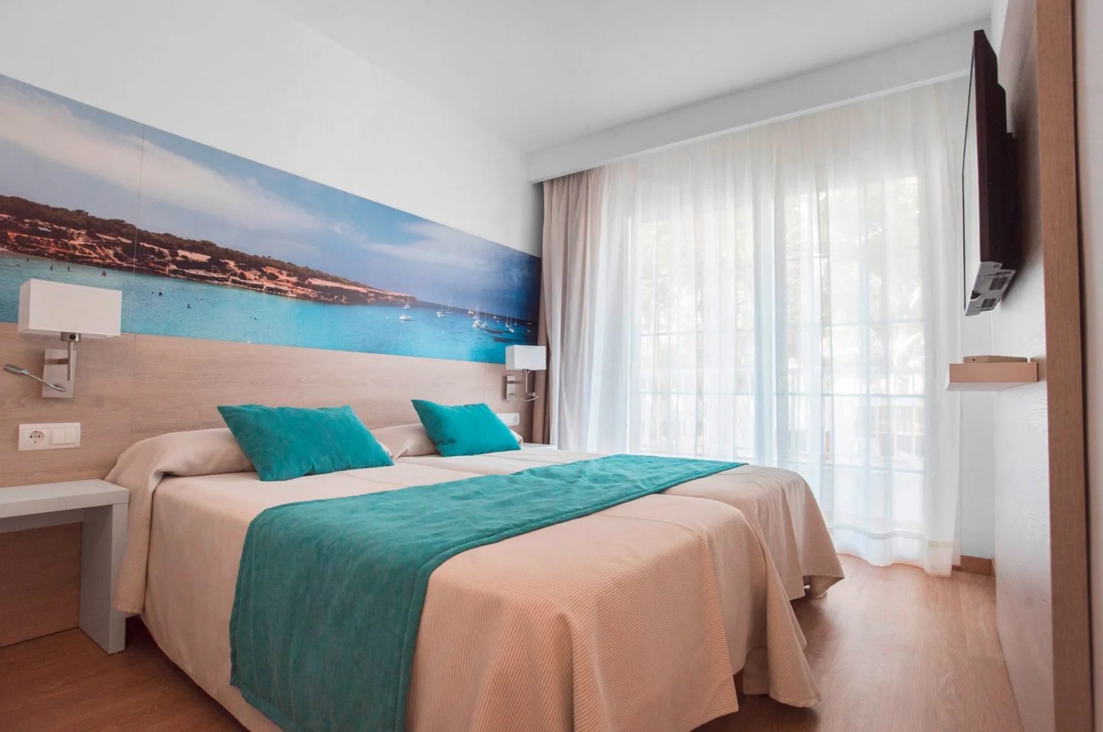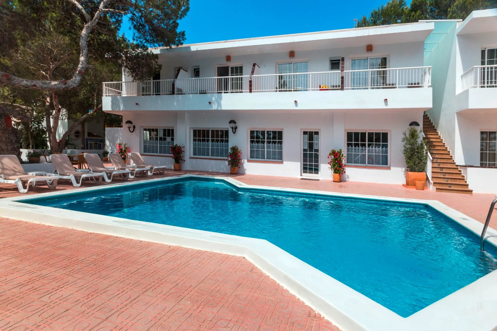 La spiaggia sabbiosa di Playa Mitjorn, la più lunga dell'isola con i suoi 6 km di sabbia alternata a calette con scogli, dista solo 350 m. L’hostal dispone di una piscina con zona separata per bambini circondata da terrazza solarium. Utilizzo di lettini solo in piscina.