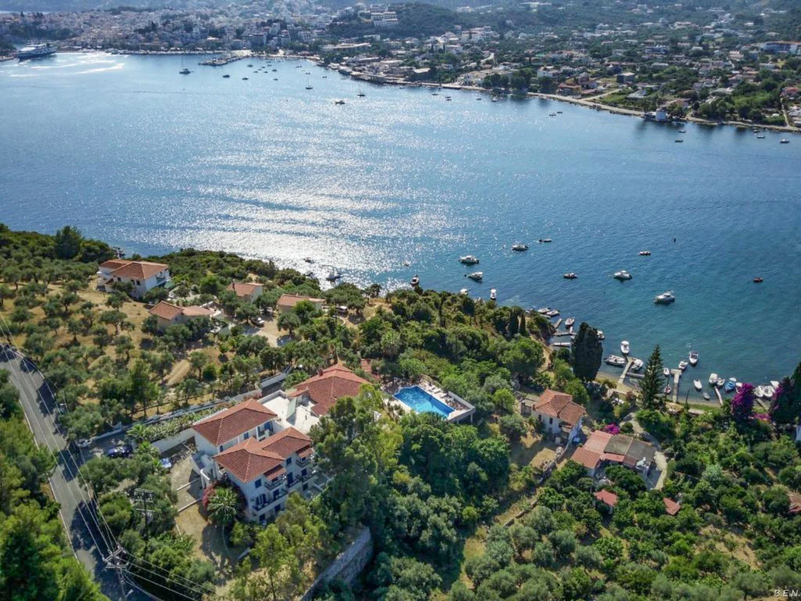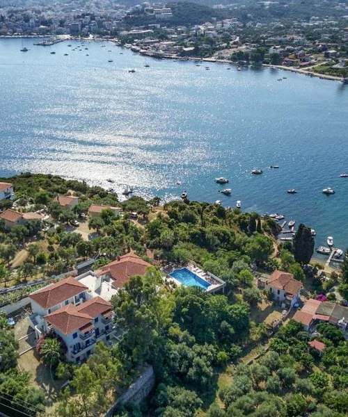 Skiathos città, nella penisola di Punta, a 1,2 km dalla spiaggetta Nino’s, 2 dal centro e 1,5 dall’aeroporto.