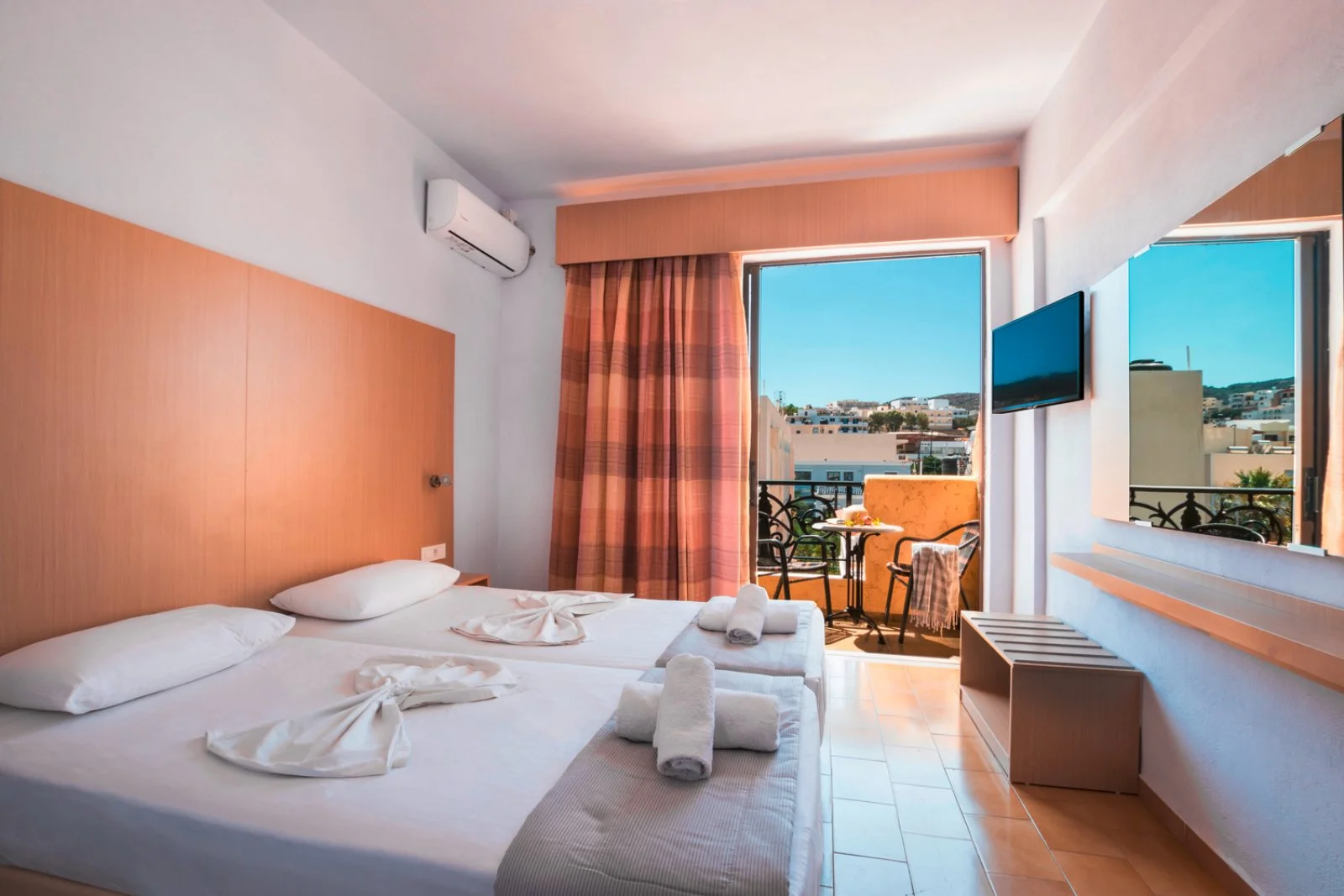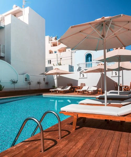 39 camere tra cui camere standard vista piscina e con supplemento, camere vista mare e deluxe vista mare, distribuite su 4 piani, tutte dotate di servizi privati, asciugacapelli, TV satellitare, bollitore per il caffè, minifrigo, cassetta di sicurezza, balcone.