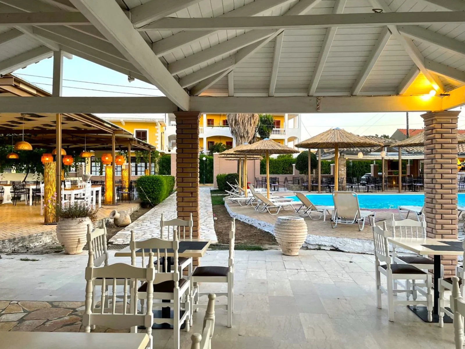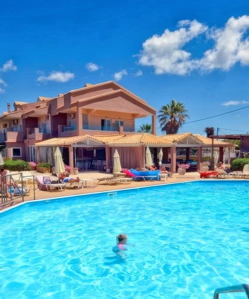 Hotel di medie dimensioni a gestione familiare, a pochi passi da una piccola spiaggia e a 1 km circa da quella più famosa di Issos, circondata nella parte settentrionale da una grande duna di sabbia che fa da confine con la zona lagunare del lago Korission.