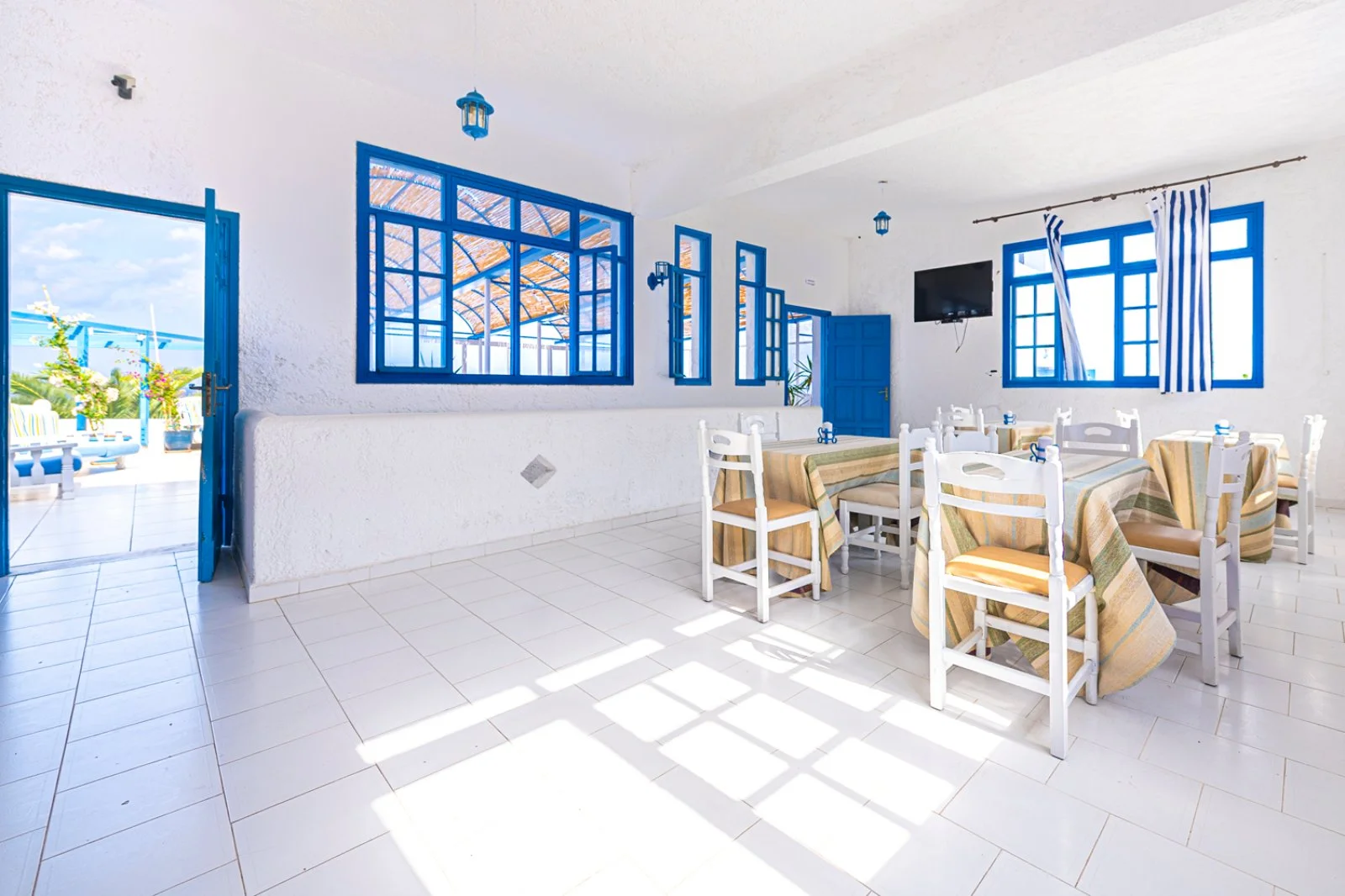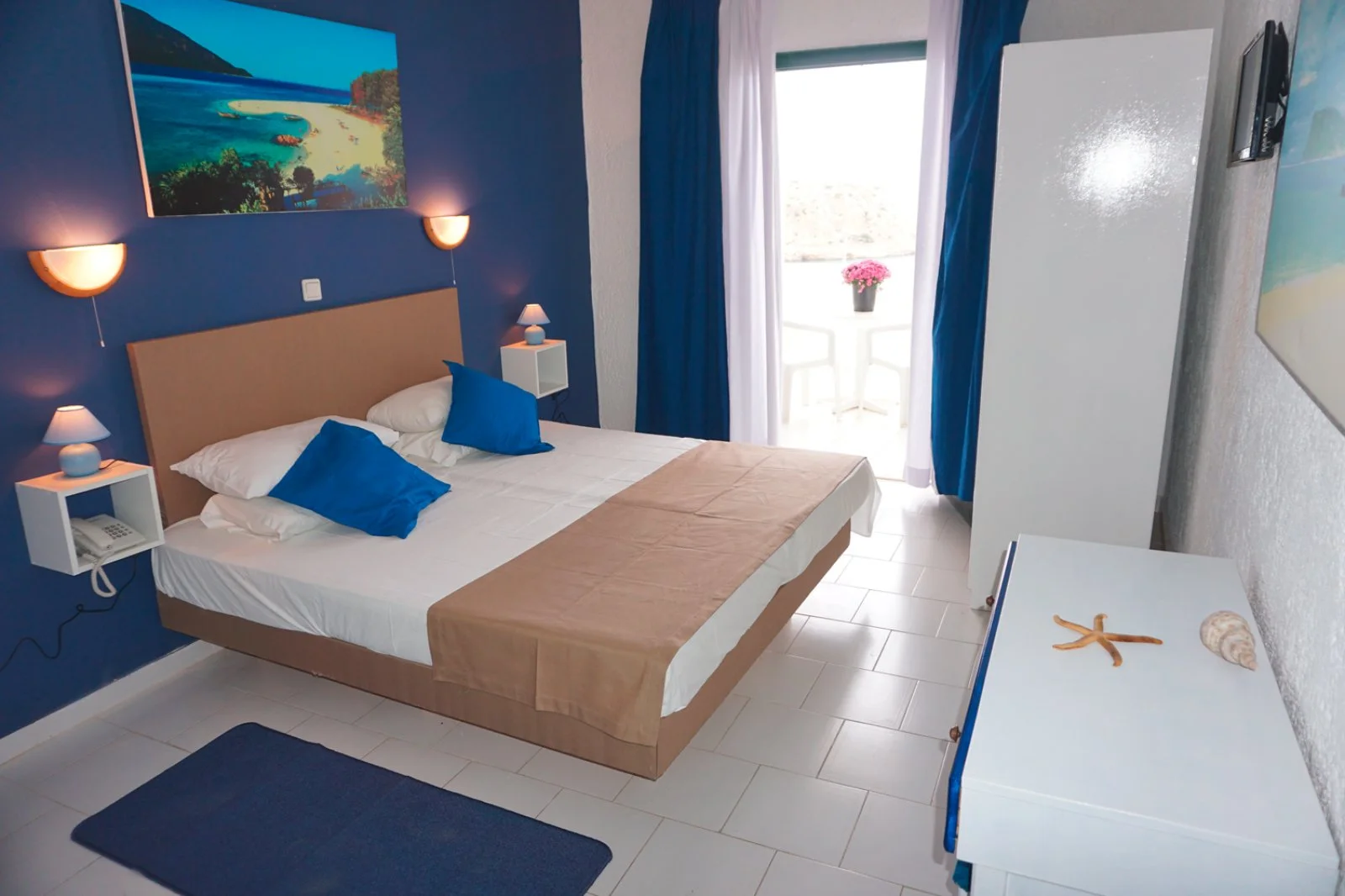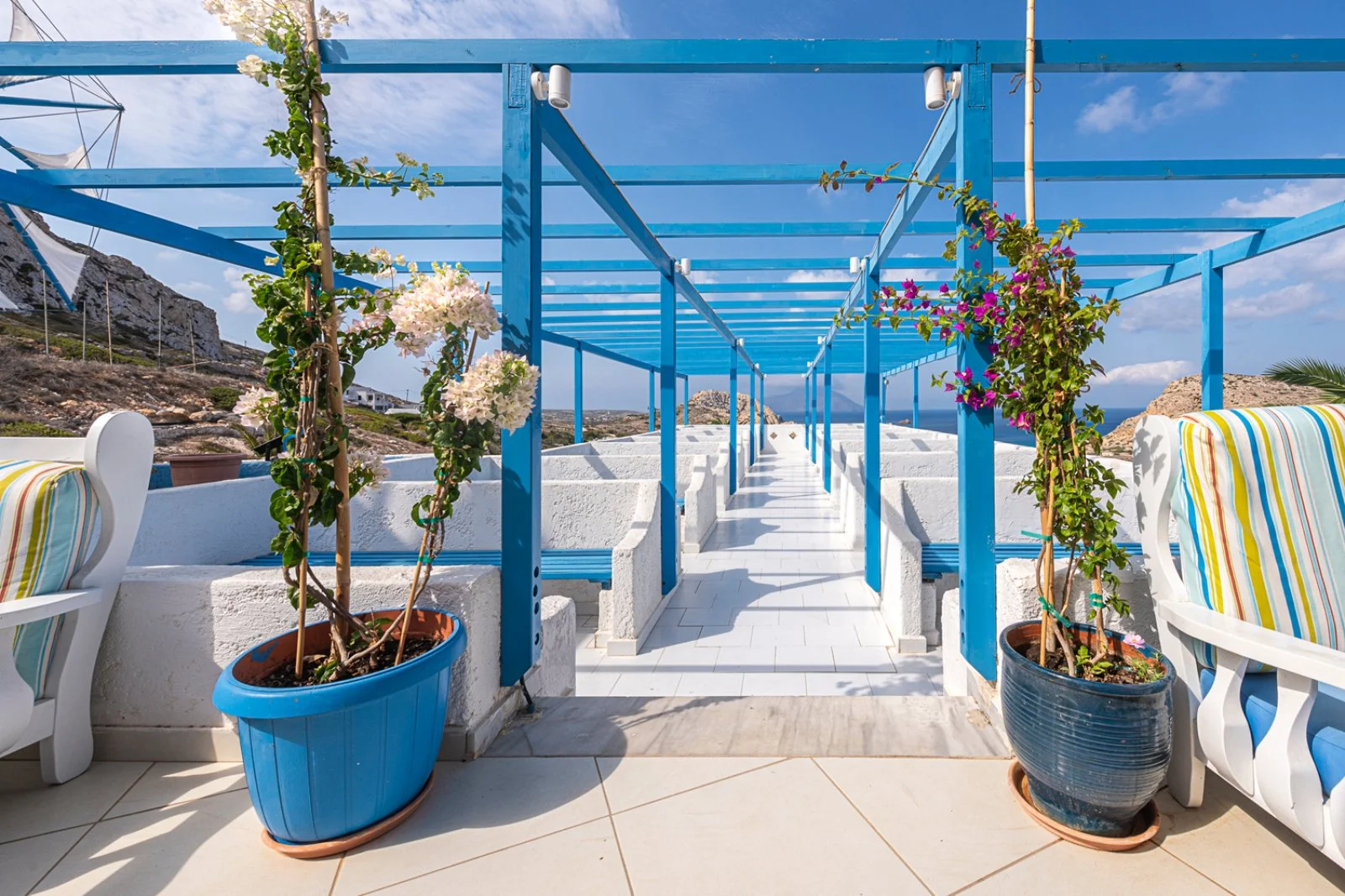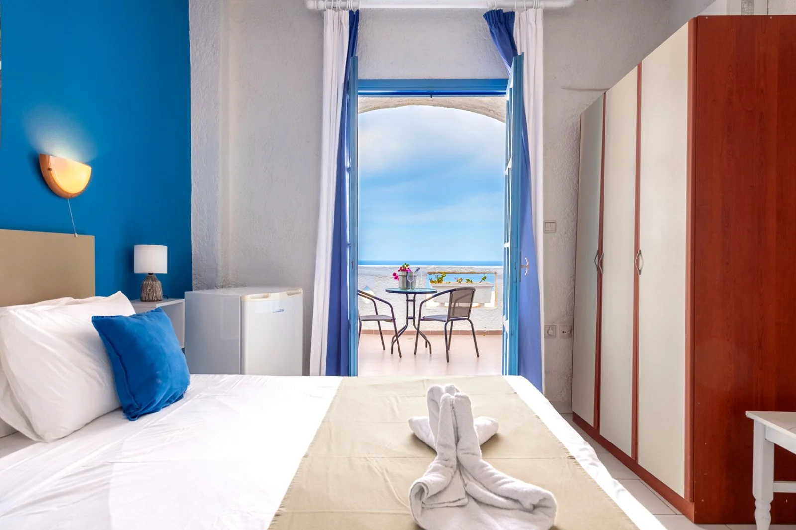 Semplice ed essenziale nelle sue linee, la struttura è tipicamente greca, con i suoi colori bianchi ed azzurri; in alcune parti riproduce gli antichi mulini con le sue vele; un servizio navetta permette di raggiungere la spiaggia agevolmente e una fermata del bus permette di spostarsi sull’isola. Inutile dire che con un noleggio auto o scooter è un ottimo punto di partenza per esplorare questa bellissima isola, che offre tipologie di paesaggio veramente inaspettate. Il centro dell’isola è tipicamente montano, come se ci trovassimo in tutt’altro posto, da cui si scorgono le bellissime baie e calette dai colori cristallini. Per gli amanti della cultura, a solo 1 km dall’hotel si trova il paese di Arkasa con il suo museo folkloristico, mentre a 3 km Finiki, il caratteristico villaggio dei pescatori.