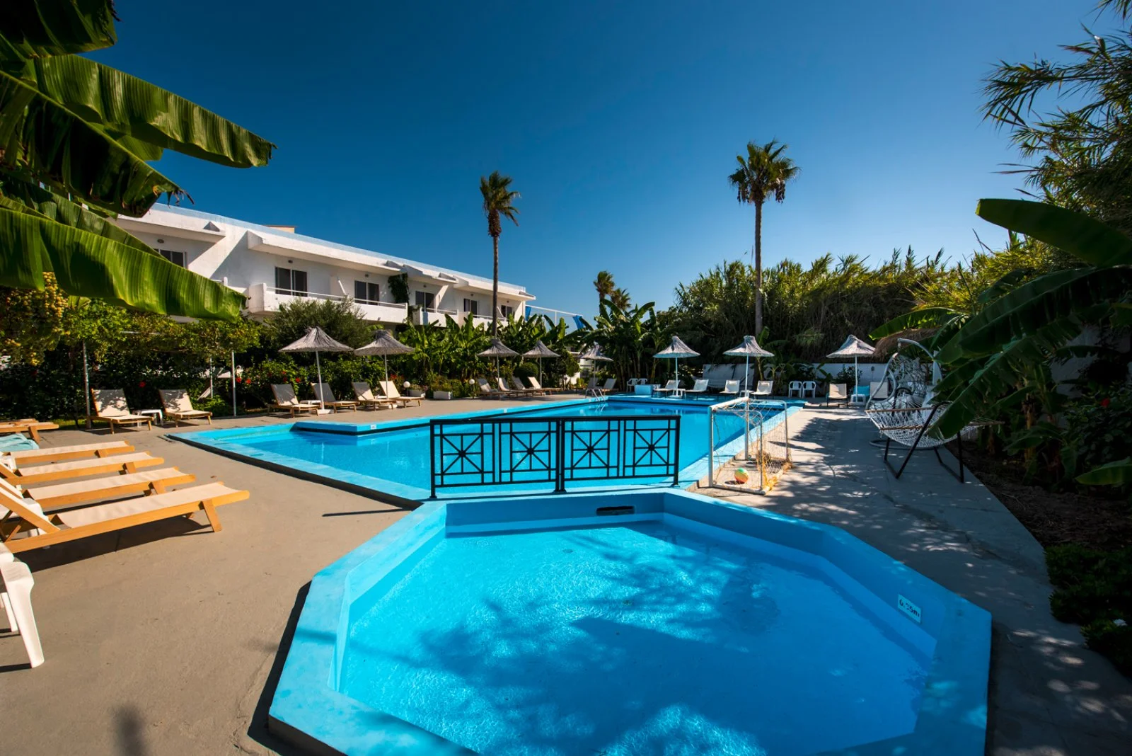 2 piscine, di cui 1 per bambini, attrezzate con ombrelloni e lettini a disposizione (teli mare non disponibili), sala TV, parcheggio e connessione Wi-Fi gratuita nella lobby. L’hotel organizza 1 sera a settimana una serata greca con barbecue a buffet, musica dal vivo e balli tradizionali.