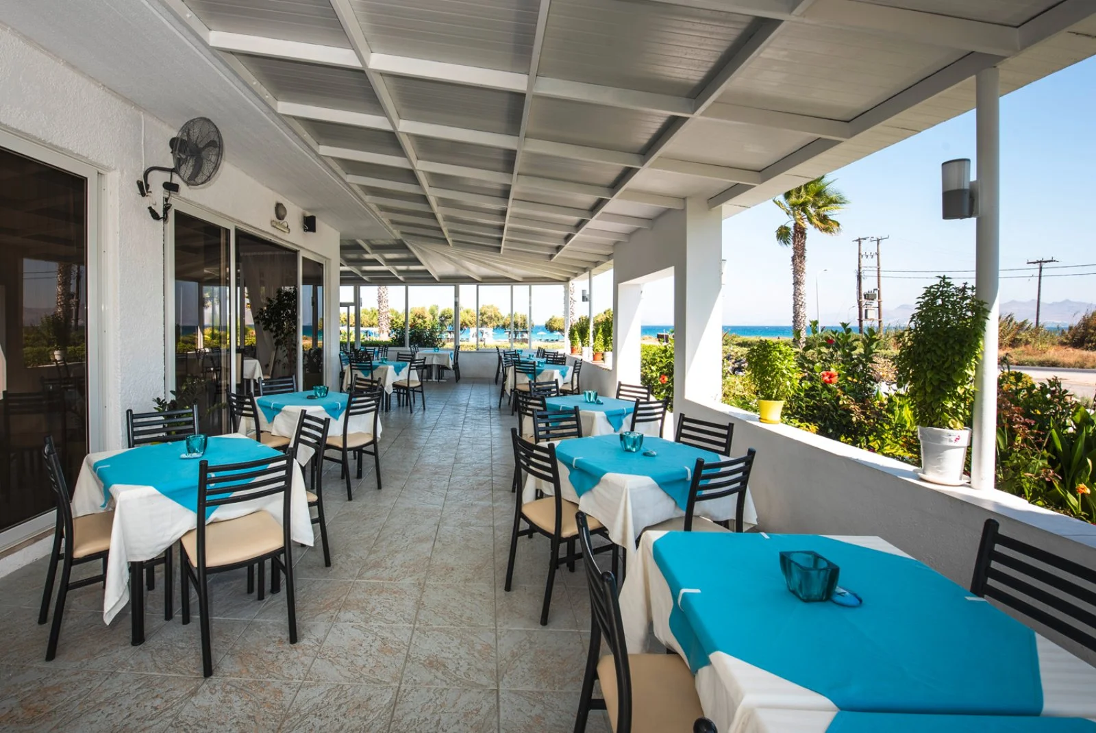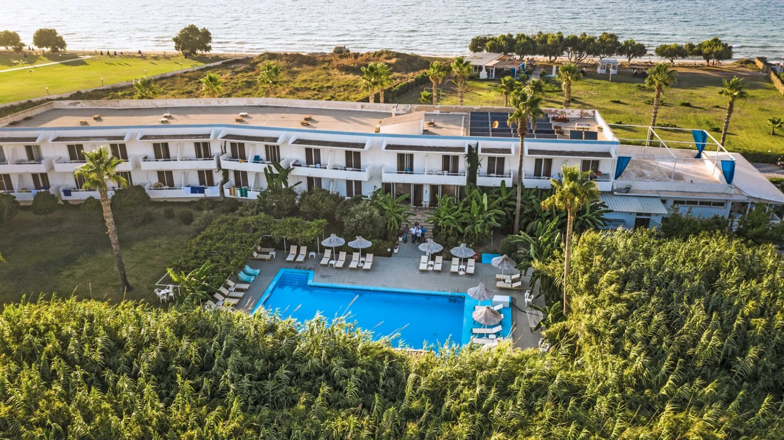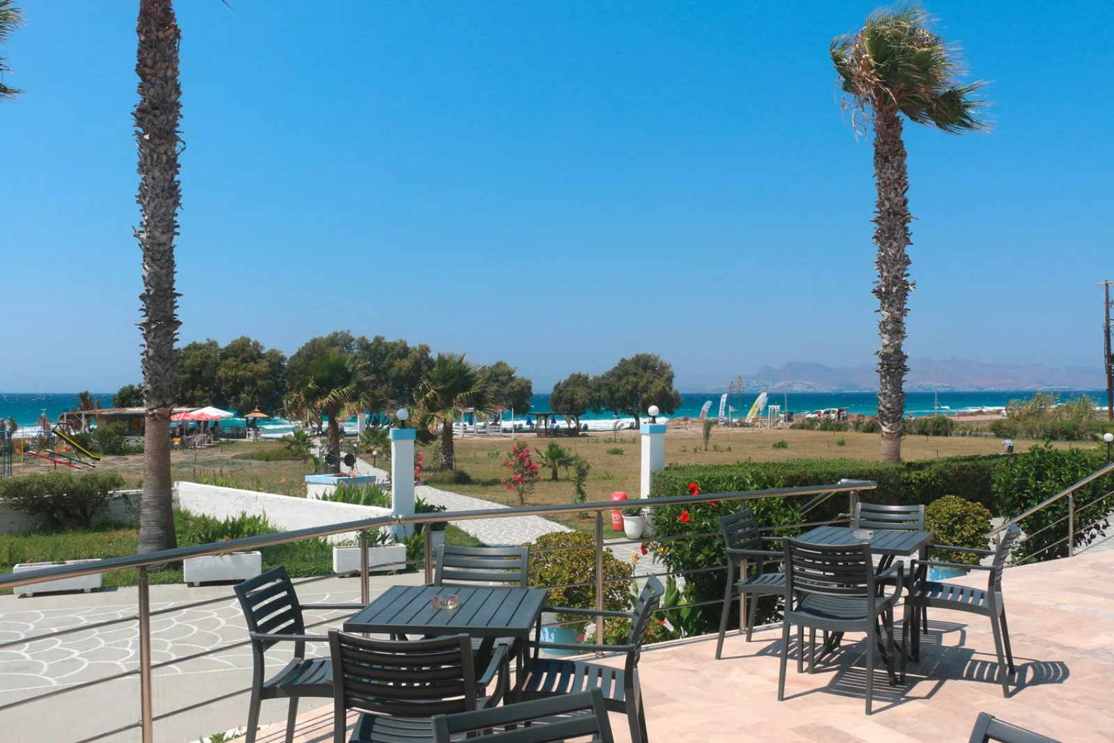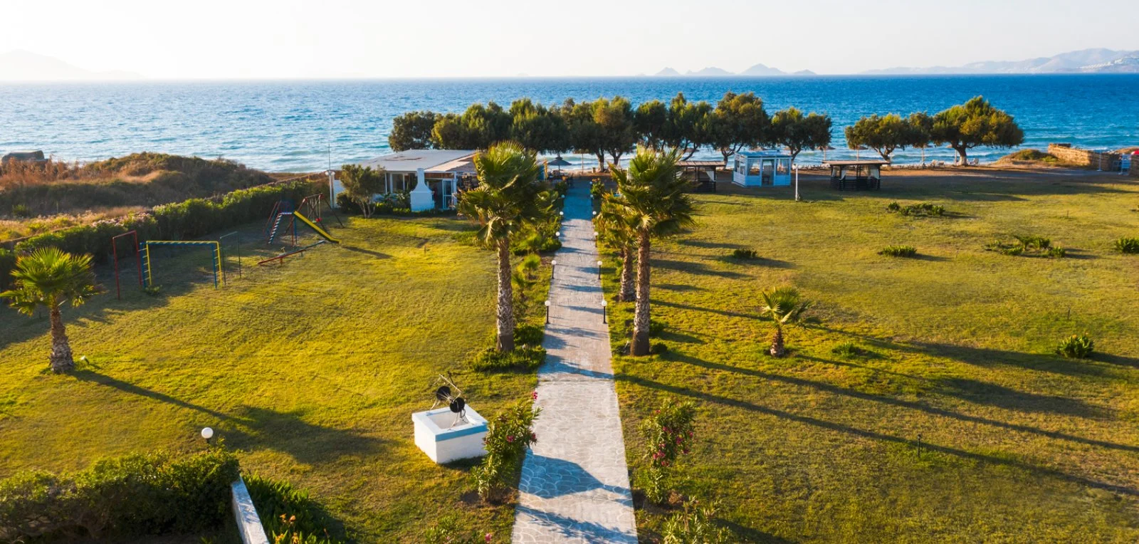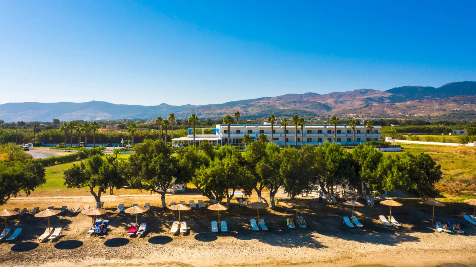 Kos, direttamente sulla spiaggia di Lambi, a 3 km dal centro di Kos e 25 dall’aeroporto. Di fronte alla reception vi è una fermata dell’autobus con frequenti collegamenti giornalieri verso la città di Kos.