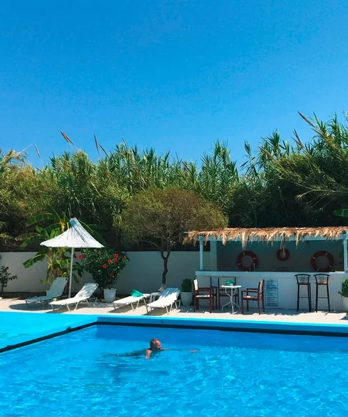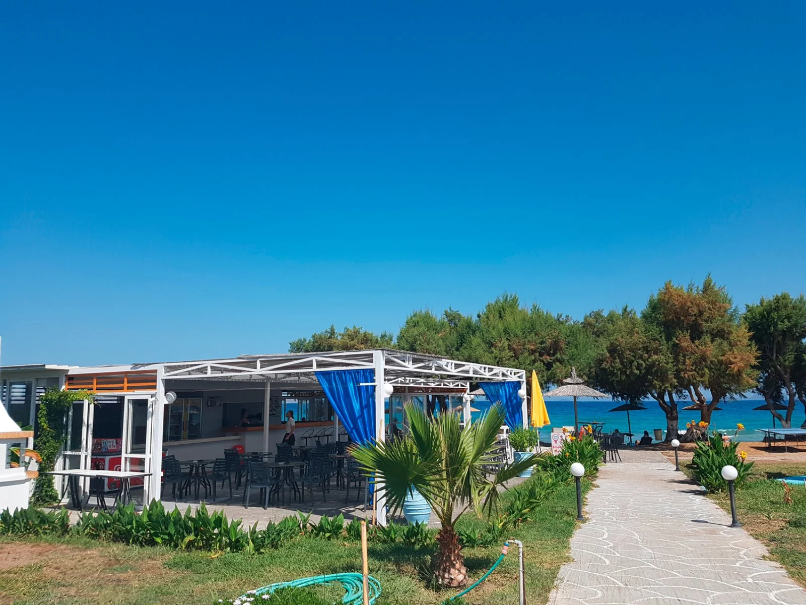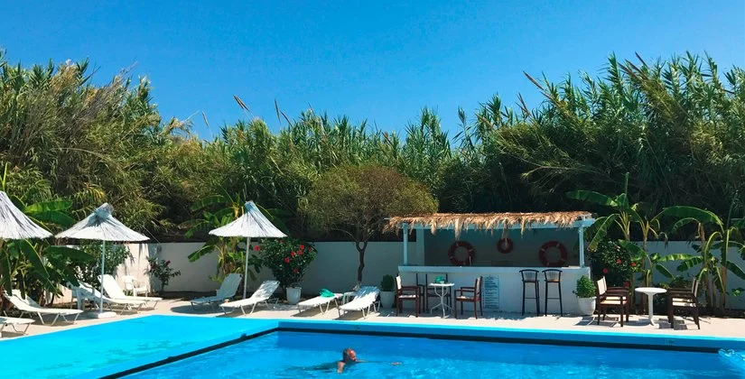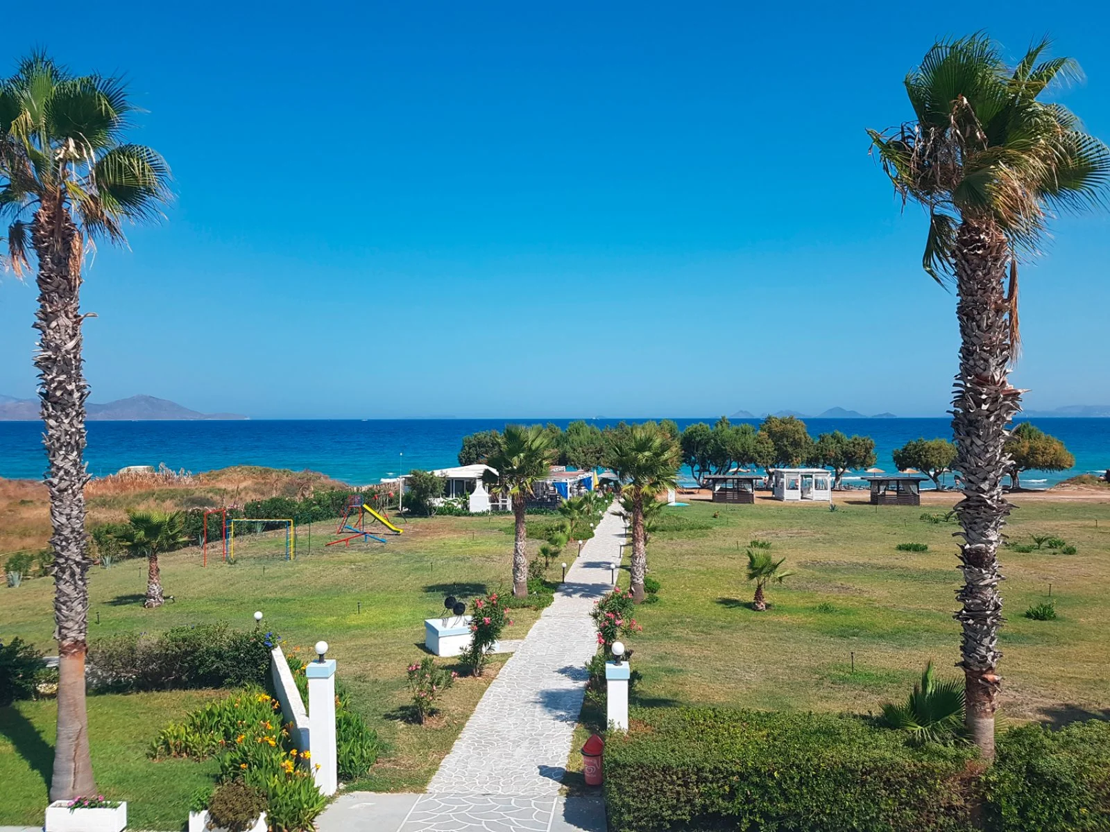 spiaggia privata attrezzata con annesso snack-bar da dove ammirare una splendida vista e meravigliosi tramonti. Lambi vanta dune di sabbia chiara ed un fondale dolcemente digradante ed è una località molto amata dagli appassionati degli sport acquatici. In questo tratto di costa, infatti, la brezza soffia costantemente ed è un piacevole refrigerio durante le calde giornate estive. Grazie alla sua vicinanza a Kos città, facilmente raggiungibile con il proprio mezzo o in autobus, la cui fermata è proprio di fronte alla struttura, questa località negli ultimi anni è diventata una delle più frequentate della zona. Nelle vie interne del paese si trovano numerosi locali, negozi e taverne.