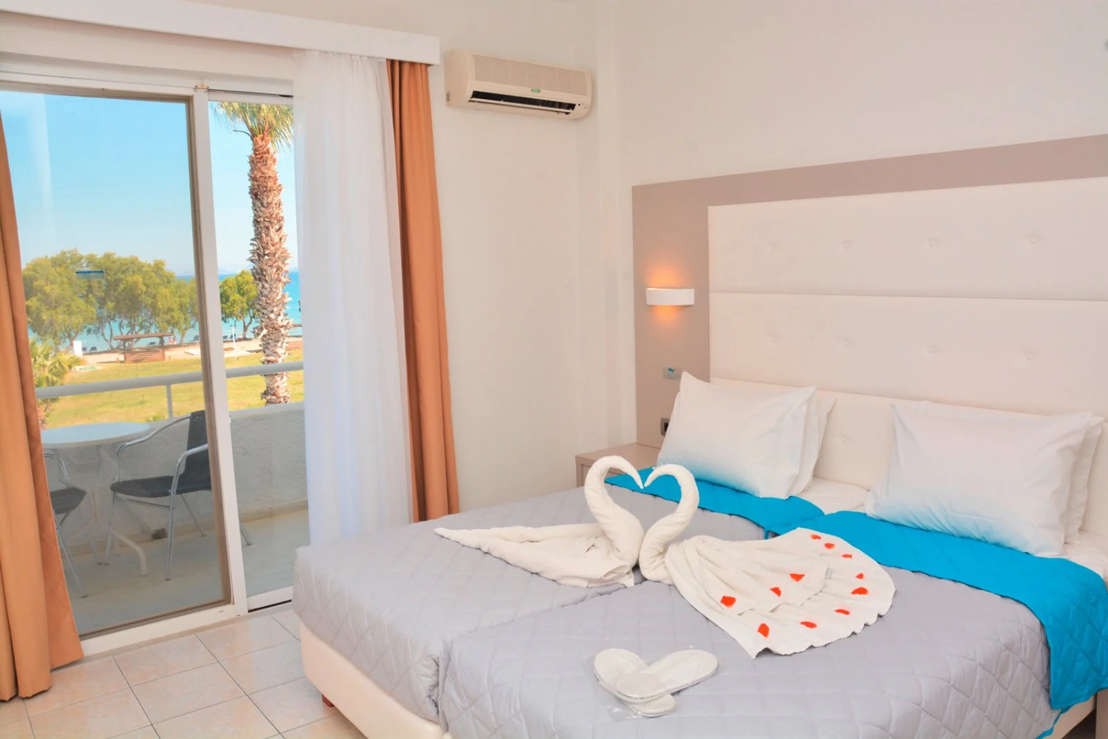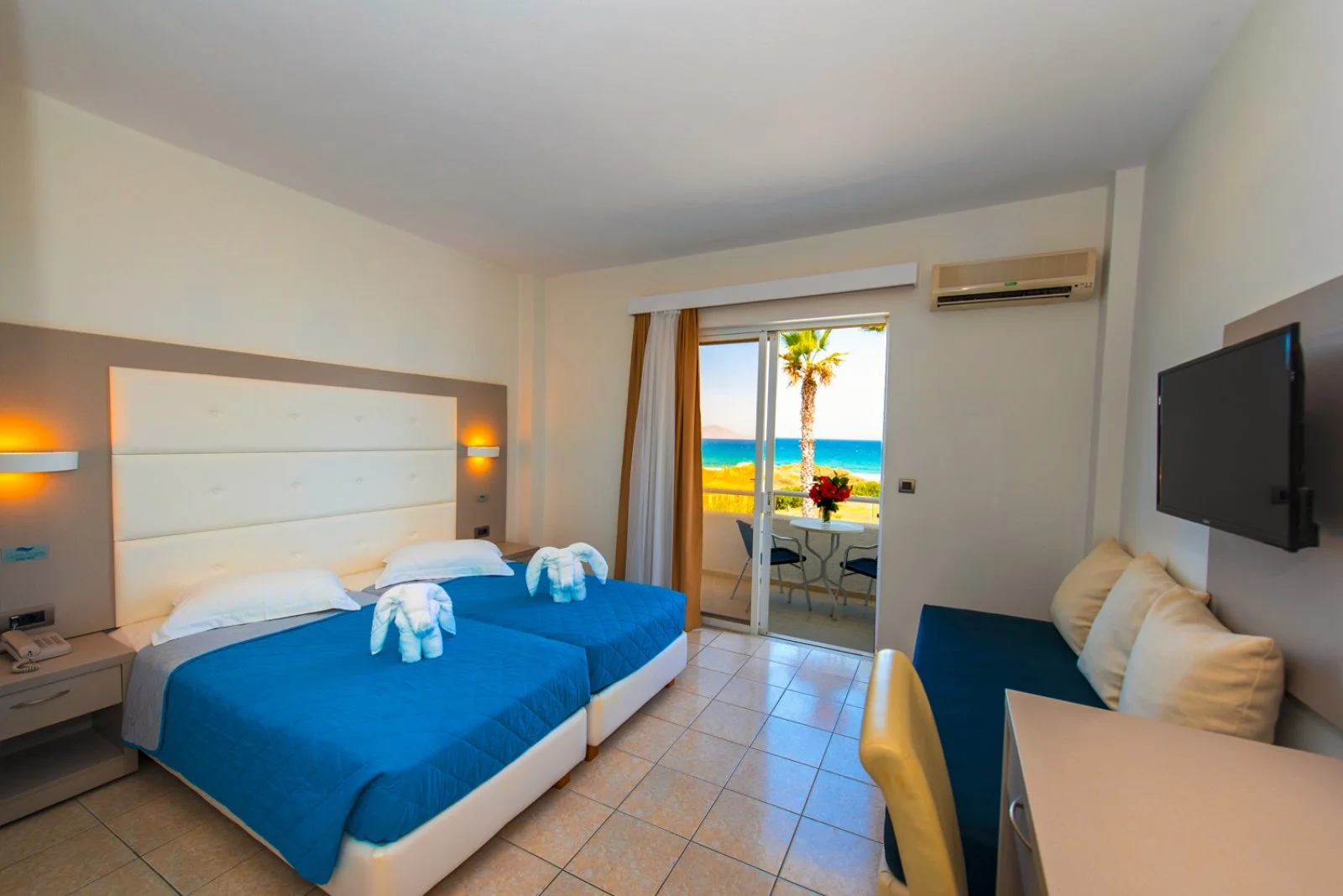 47 camere (22m2) distribuite su 2 piani con servizi privati, asciugacapelli, TV satellitare, aria condizionata, telefono, minifrigo e terrazza o balcone. A pagamento, cassetta di sicurezza. Connessione Wi-Fi gratuita nella lobby. Sono disponibili, con supplemento, camere vista mare.