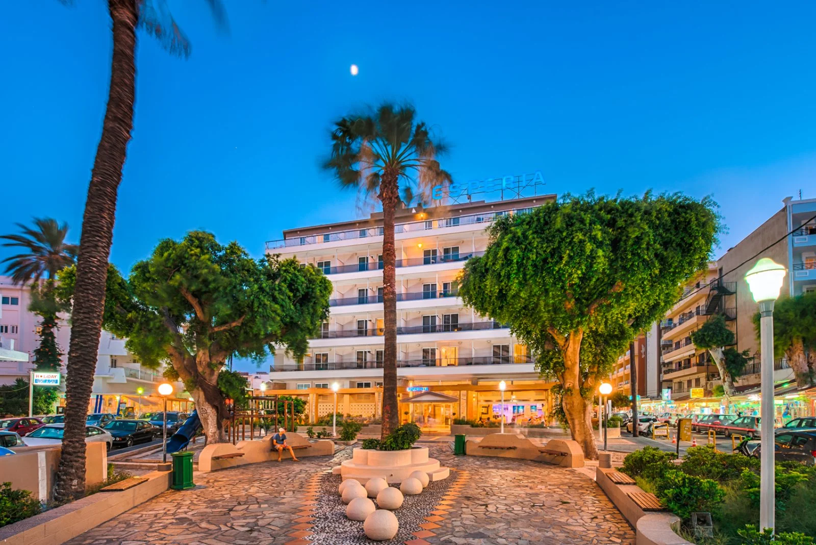 nel pieno centro della parte moderna di Rodi. Ideale per chi ama non dover scegliere tra mare, divertimento e cultura. Si trova, infatti, a pochi passi dal mare, con il vantaggio di poter scegliere tra due spiagge diverse, una nella costa ovest per gli amanti degli sport acquatici e una nella più riparata costa est per gli amanti del relax al sole. Anche per il divertimento notturno c’è l’imbarazzo della scelta, tra un cocktail nella bar street, una serata al Casinò o una cena etnica. E ancor più possibilità esistono per gli amanti della cultura, che nella città vecchia troveranno un vero e proprio capolavoro architettonico che deve la sua nascita ai Cavalieri di San Giovanni, ma che è divenuta in epoca ben più recente un vero e proprio centro di cultura e di divertimento, con ristoranti molto chic, negozietti per tutte le tasche e locali per tutti i gusti. Perdetevi fra le sue viuzze e provate le tante taverne dall'atmosfera conviviale... perché non si può dire di essere stati in Grecia senza aver assaggiato l’infinita varietà di mezedes e aver sorseggiato un bicchierino di ouzo!