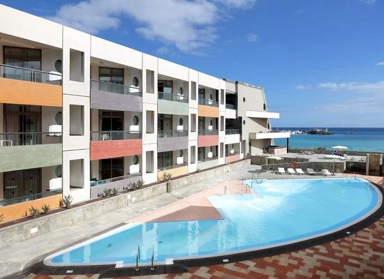 223 camere, tutte junior suite e suite, distruibuite su 3 edifici di 3 piani, tutte con servizi privati, asciugacapelli, zona giorno con divano letto, aria condizionata, tv con alcuni canali italiani (RAI), angolo cottura, minifrigo, cassetta di sicurezza, connessione wi-fi, terrazza o balcone. Disponibili con supplemento, junior suite vista mare e suite di più ampia metratura.