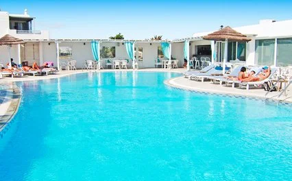 una piscina per adulti con 2 aree separate per bambini e area idromassaggio, attrezzata con lettini e teli mare a disposizione. Area TV, connessione Wi-Fi nelle aree comuni e parcheggio. A pagamento, lavanderia e internet point. Dalla spiaggia di Plati Yalos, esiste un servizio pubblico che collega in barca le spiagge di Paraga, Paradise, Super Paradise, Agrari e Elia (opera generalmente tra le 8.30 e le 18.00).