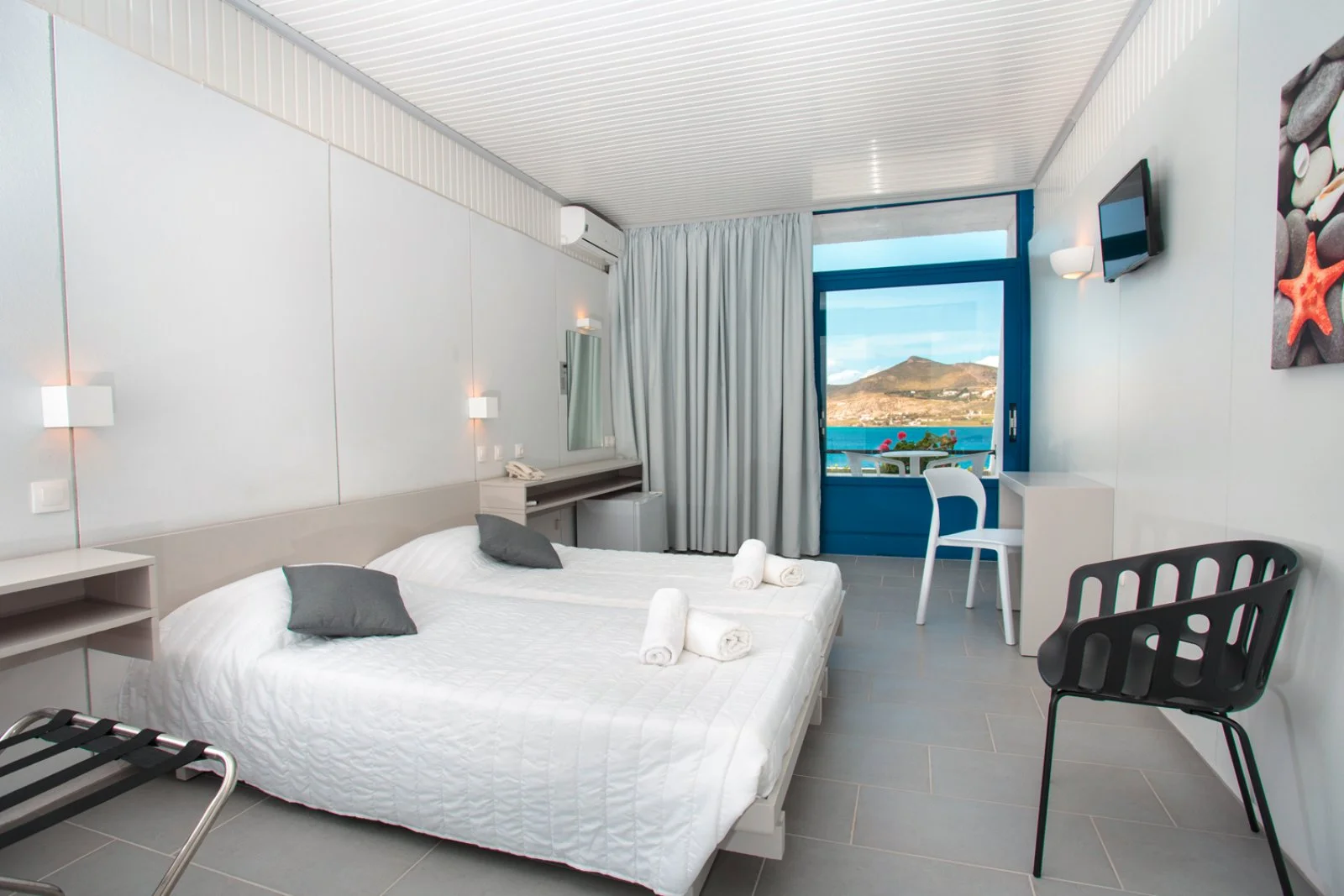 40 camere rinnovate disposte su 3 piani (20 m2), con servizi privati, asciugacapelli (gratuito e su richiesta), TV satellitare, telefono, minifrigo, aria condizionata, cassetta di sicurezza, connessione Wi-Fi gratuita e terrazza o balcone vista mare. Sono disponibili, con supplemento, camere superior vista mare.