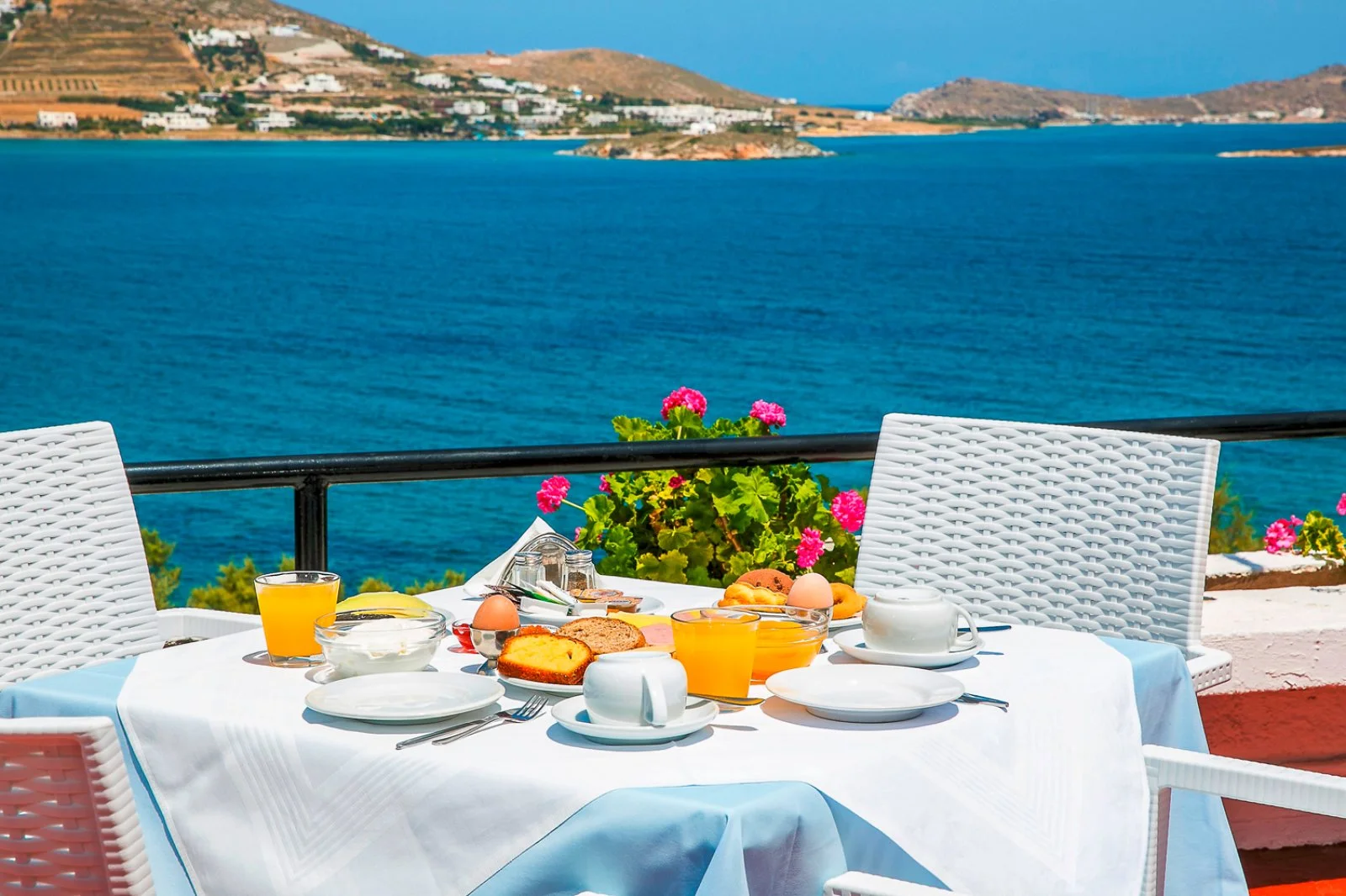 posizione invidiabile sul golfo di Naoussa e Kolymbithres. Le camere dedicate agli ospiti Eden sono tutte vista mare e si segnalano in particolare le superior, tutte rinnovate in stile minimal e moderno. Ogni giorno vi verrà servita la prima colazione nella terrazza all’ultimo piano, apprezzatissima da tutti gli ospiti per la sua vista panoramica mozzafiato e per la qualità del buffet. Il centro di Naoussa è raggiungibile comodamente a piedi in soli 10 minuti.