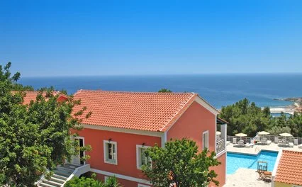 L'hotel Mykali è la scelta perfetta per chi vuole rilassarsi e staccare la spina totalmente. Ha uno stile tradizionale, con camere non ampissime ma funzionali e dislocate in tante colorate palazzine. La relativa distanza dalla spiaggia (la baia più vicina è a 800 m) è compensata dalla grande piscina che gode di splendida vista panoramica sull’Egeo e sulla Turchia.