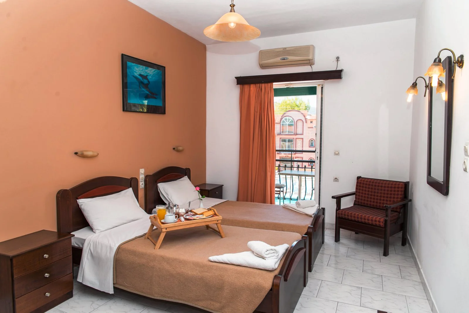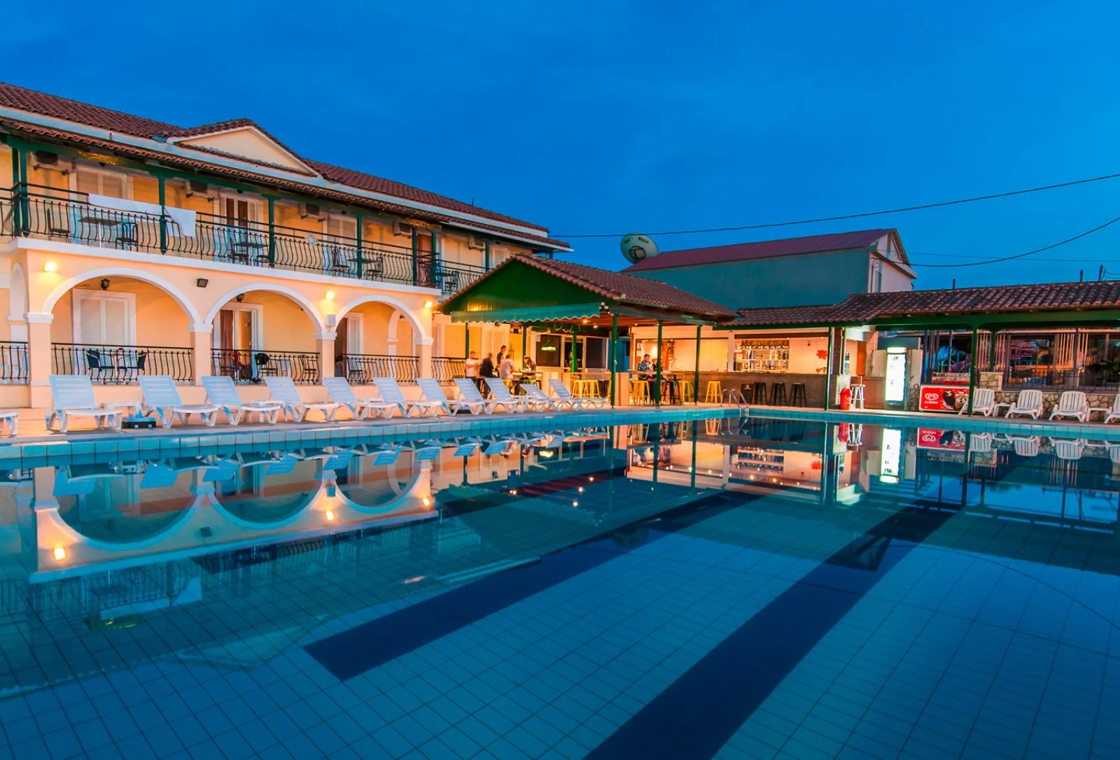 clientela giovane ed informale e anche piccoli gruppi, in quanto le camere possono ospitare fino a 4 adulti. Oltre al trattamento di solo pernottamento è possibile aggiungere, con supplemento, anche la prima colazione e la mezza pensione fino ad arrivare al tutto incluso, scegliendo così il trattamento più adatto alle vostre esigenze. La movimentata spiaggia di Laganas dista poco più di 1 km e offre divertimento fin dal mattino grazie alla possibilità di praticare numerosi sport acquatici e sorseggiare drink a ritmo di musica nei numerosi beach bar che si susseguono lungo la spiaggia, come il Pure Beach Club o il Life is a Beach. Laganas, insieme alle spiagge di Tsilivi e Alykes, è infatti il luogo di ritrovo principale dei giovani che vogliono tirare tardi. Da qui potrete, inoltre, partire con alcune delle numerose escursioni in barca verso l’isolotto di Marathonissi e alle vicine grotte di Kerì, mentre gli appassionati di subacquea avranno l’opportunità di prendere parte ad indimenticabili immersioni. Dopo il calare del sole, il divertimento notturno si sposta nelle tante discoteche lungo la Main Road, adatte anche a giovani over 30 e non solo ai giovanissimi!