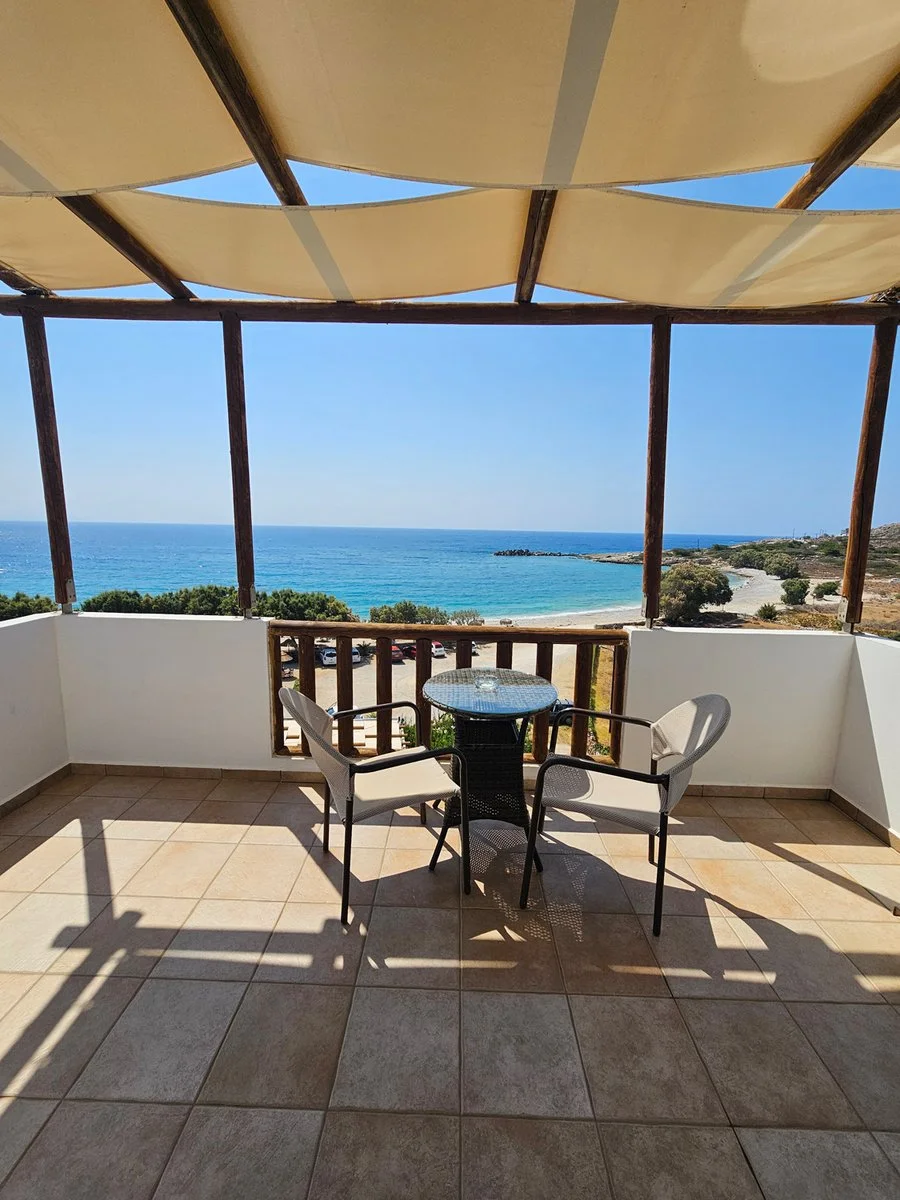 unico edificio costruito in pratica direttamente sulla spiaggia di Potali, una piccola baia incorniciata tra i colori cristallini dell’Egeo e le brulle colline sullo sfondo. Dispone di studio e maisonette su 2 piani che possono ospitare fino a 4 occupanti, ben arredati e con angolo cottura discretamente funzionale. In alternativa, il ristorante sottostante, facente parte della proprietà e aperto al pubblico, è perfetto per non perdere nemmeno un minuto di sole e rilassarsi nel piccolo giardino che separa la struttura dalla spiaggia. Data la sua posizione isolata, si tratta senza dubbio della soluzione giusta per chi desidera staccare completamente la spina e allontanarsi dalle zone più turistiche dell’isola, Pigadia e Amoopi, per rigenerarsi. Eden suggerisce comunque di munirsi di auto al seguito per esplorare la costa occidentale e raggiungere anche la vicina Lefkos, in cui trovare qualche servizio e altre 3 splendide spiagge.