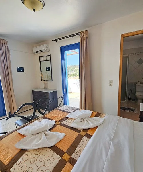 Si tratta dell’unico edificio costruito in pratica direttamente sulla spiaggia di Potali, una piccola baia incorniciata tra i colori cristallini dell’Egeo e le brulle colline sullo sfondo. Dispone di studio e maisonette su 2 piani che possono ospitare fino a 4 occupanti.