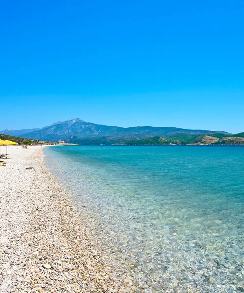 Mikali, a 50 m dalla lunga spiaggia di ciottoli, 9 km da Pythagorion, 8 da Samos città e 12 dall’aeroporto. Navetta gratuita una volta al giorno per il centro di Pythagorion.
