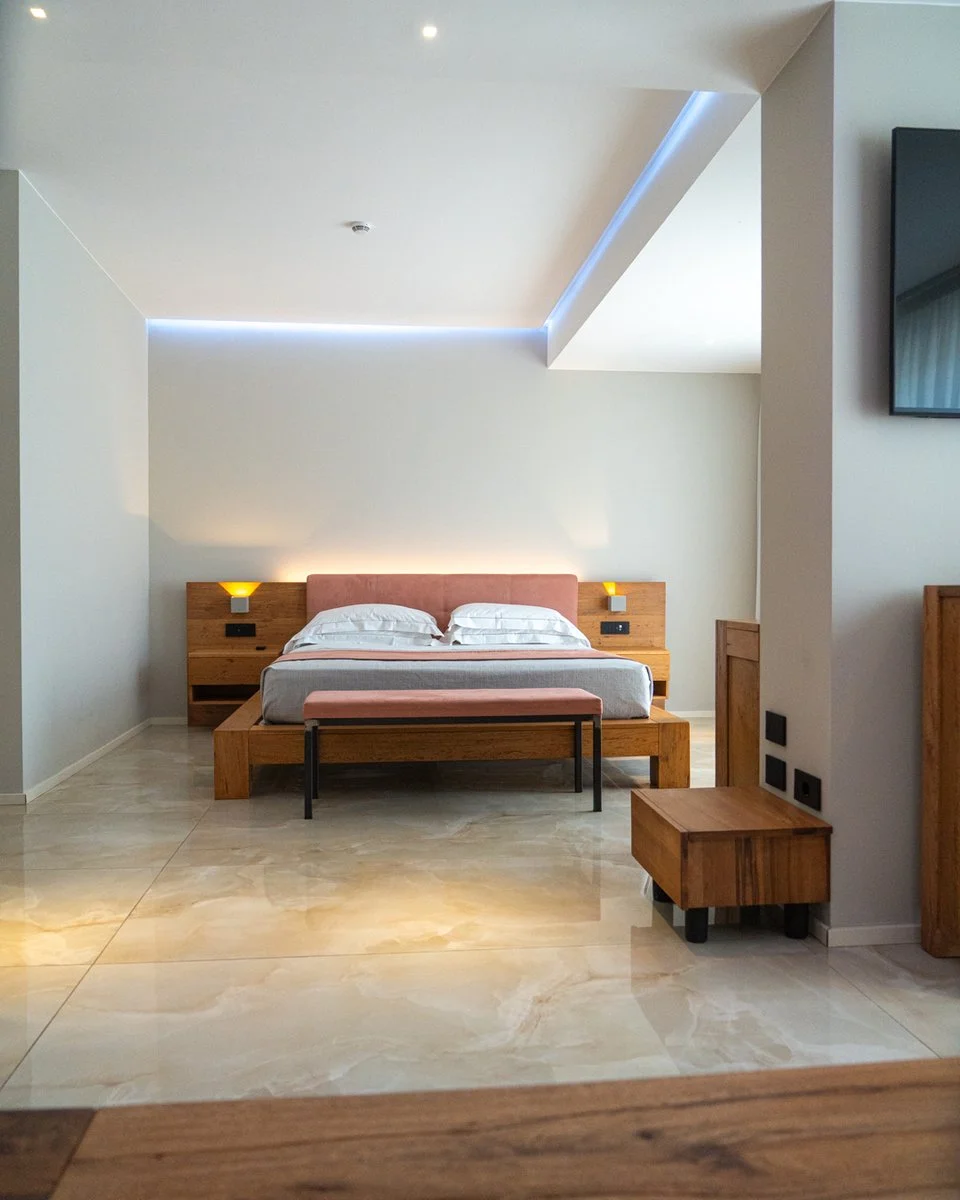75, dalle tonalità naturali, materiali ricercati, design contemporaneo ed uno stile originale, tutte dotate di servizi privati e asciugacapelli, tv sat, wi-fi, cassaforte, minibar (a pagamento). Si dividono in premium (circa 18 m2 e per massimo 2 adulti + culla) con balcone con vista sul cortile; premium plus con balcone vista piscina; prestige (circa 23 m2 per massimo 4 persone) con balcone vista cortile o giardino; executive (circa 24 m2 per massimo 4 persone) con balcone vista piscina.