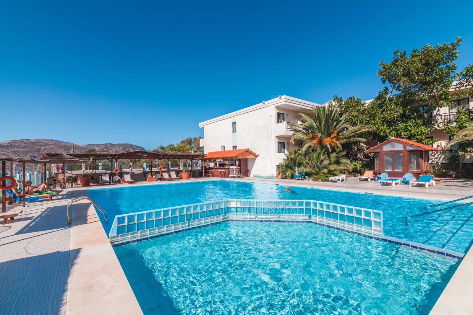 Hotel di buona qualità rispetto agli standard karpathiani, che deve il suo nome ai sette figli dei proprietari e noto fino a qualche tempo fa come uno dei migliori dell’isola, apprezzato in particolare per la bella piscina. E’ ubicato su una collinetta, in bella posizione panoramica da cui ammirare la sottostante Pigadia. Non essendo direttamente sulla spiaggia, i più pigri potranno approfittare della piscina per il più totale relax. La sera, invece, potrete scendere fino al porto con una bella passeggiata, raggiungere una delle tante taverne per assaporare le bontà locali e immergervi nel festoso clima greco.