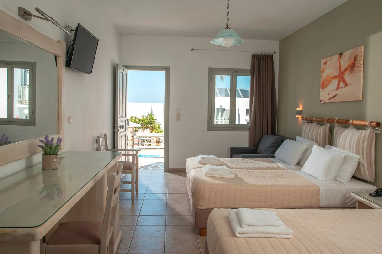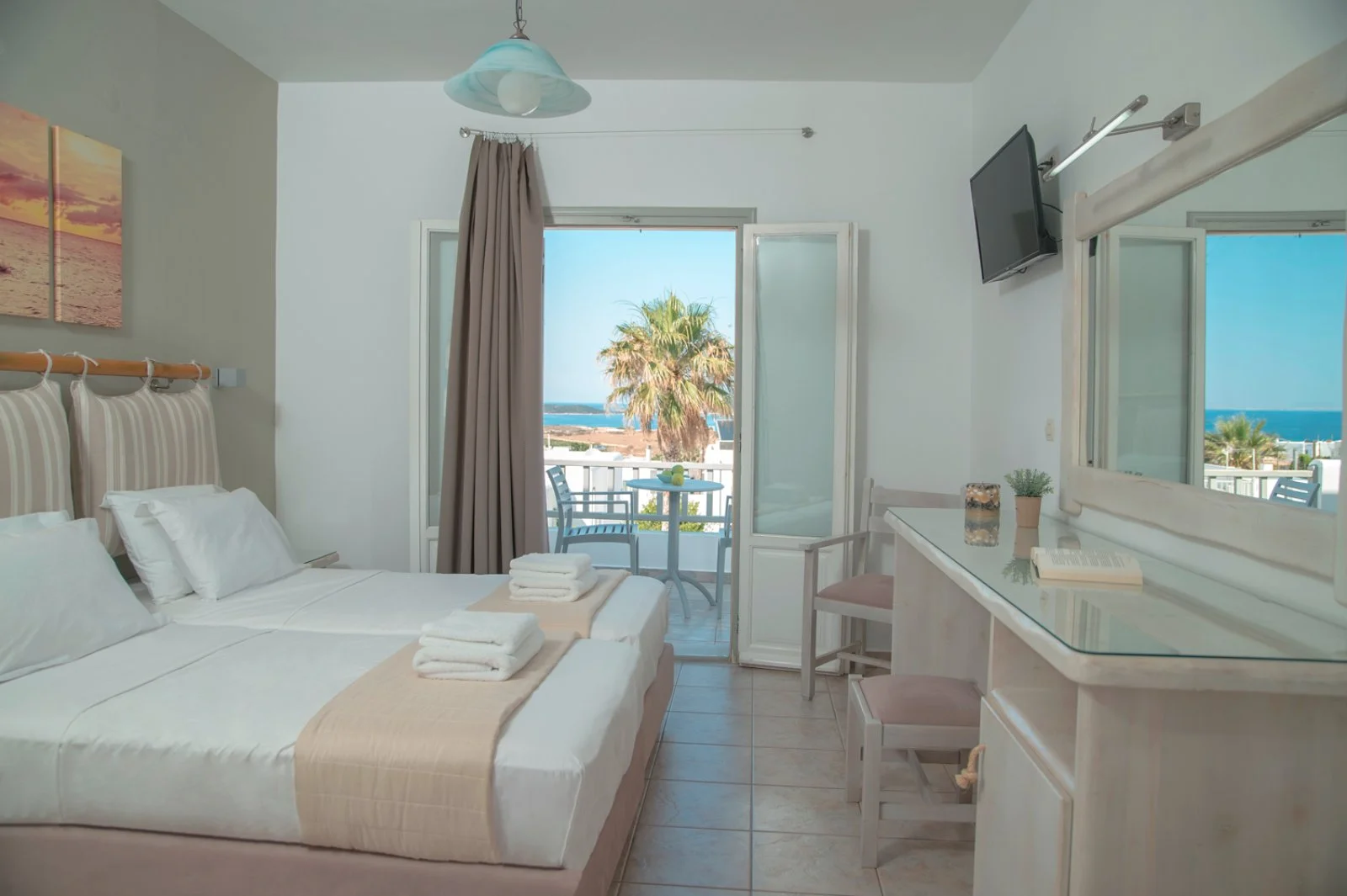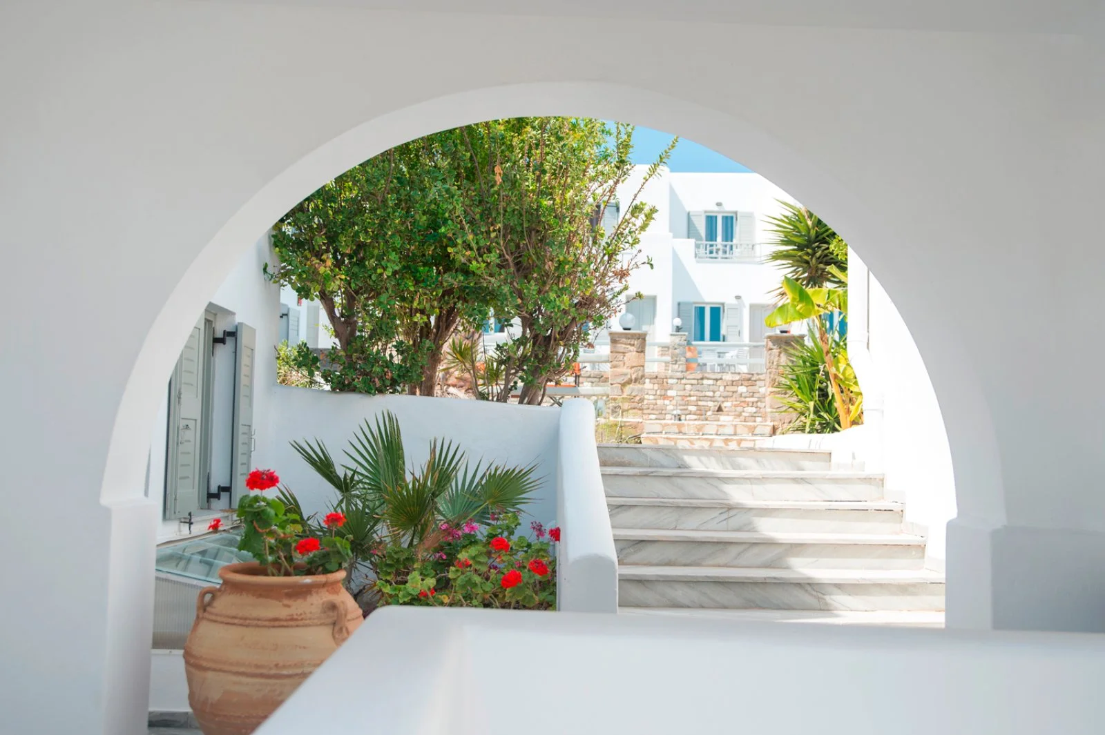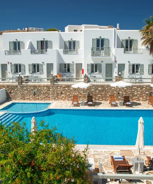 Hotel davvero piacevole e ben tenuto, in tipico stile cicladico con pareti bianchissime. Dispone di una bella area piscina in cui i pigri potranno rilassarsi e godersi la tintarella, mentre a meno di un chilometro si trova la spiaggia cittadina di Angioi Anargyroi per rilassanti giornate di mare. La location leggermente defilata mixa perfettamente il riposo e il silenzio notturno con la vicinanza alla vivace Naoussa, una splendida chora bianchissima. La sera questo piccolo centro si anima grazie ai numerosi ristoranti e locali che affollano il porticciolo, osservando lo struscio di turisti dai tavoli praticamente sull’acqua o dai bar che allietano le serate a suon di musica, tra cui segnaliamo Agosta, Barbarossa e Sommaripa. Date le dimensioni contenute dell’isola, Eden vi suggerisce di spaziare in lungo in largo noleggiando un mezzo di trasporto.