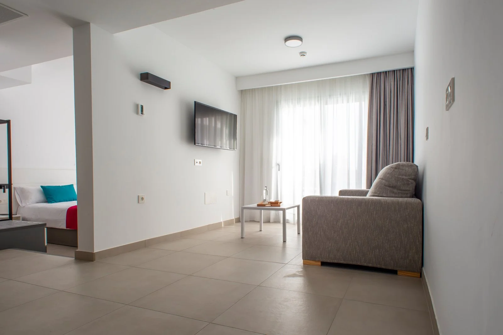 100 camere (38 m2) distribuite su un edificio a 2 piani, tutte con servizi privati, divano letto, asciugacapelli, bollitore, tv, aria condizionata, connessione wi-fi gratuita e terrazza o balcone. A pagamento, cassetta di sicurezza e minibar. Disponibili con supplemento,suite premium (solo maggiori di 16 anni), con camera da letto, zona soggiorno e solarium privato.