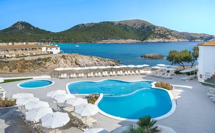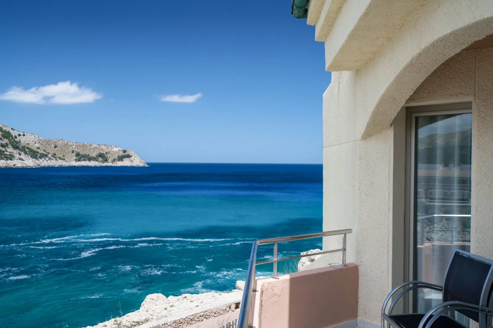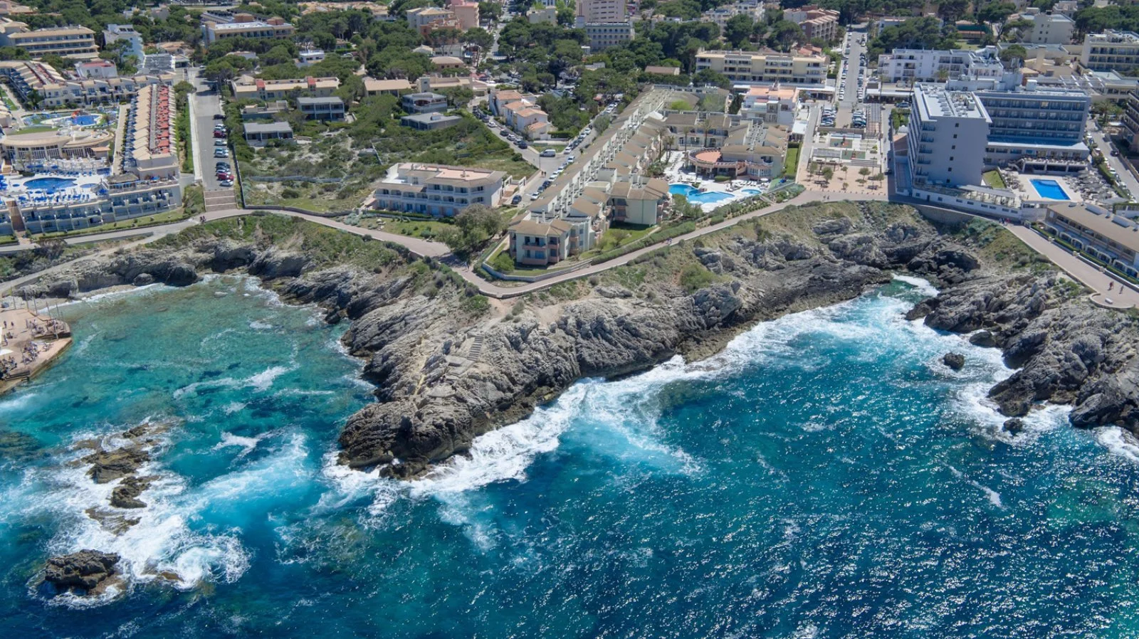 Cala Agulla, una delle spiagge più belle e selvagge della costa est di Maiorca dove il mare cristallino si staglia sulla sabbia candida e sulle rocce possenti tutt’intorno. La struttura, benché fronte mare, non è direttamente sulla spiaggia che però dista una manciata di metri ed è facilmente raggiungibile grazie al percorso pedonale che costeggia la scogliera.