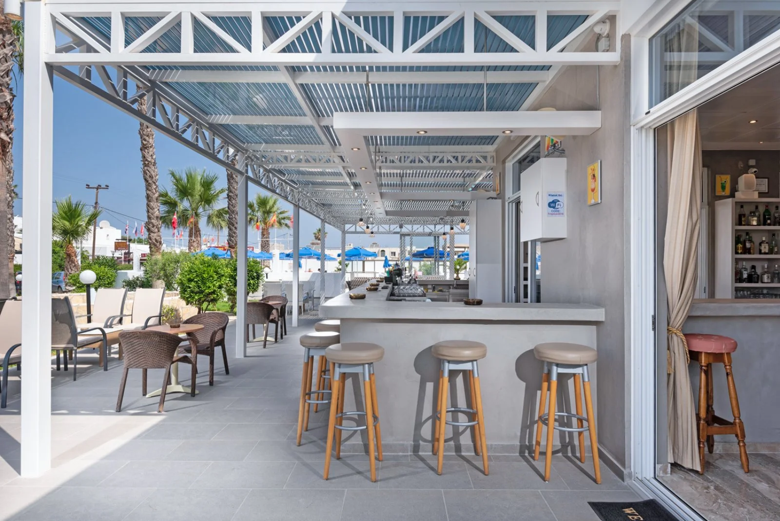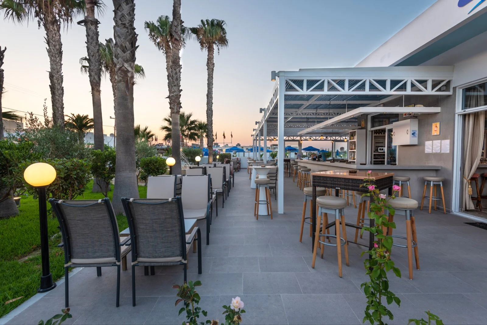 a 200 metri dalla profonda e bellissima spiaggia di sabbia che consente lunghe passeggiate fino al suggestivo lago salato dove ammirare, con un po’ di fortuna, anche i fenicotteri. Nel centro di Tigaki troverete alcuni negozi, ristorantini e taverne tipiche, mentre chi cerca una frizzante vita notturna può raggiungere Kos città. Si tratta dunque della soluzione ideale per gli amanti del mare, che qui troveranno acque trasparenti e dolcemente digradanti, e della tranquillità.