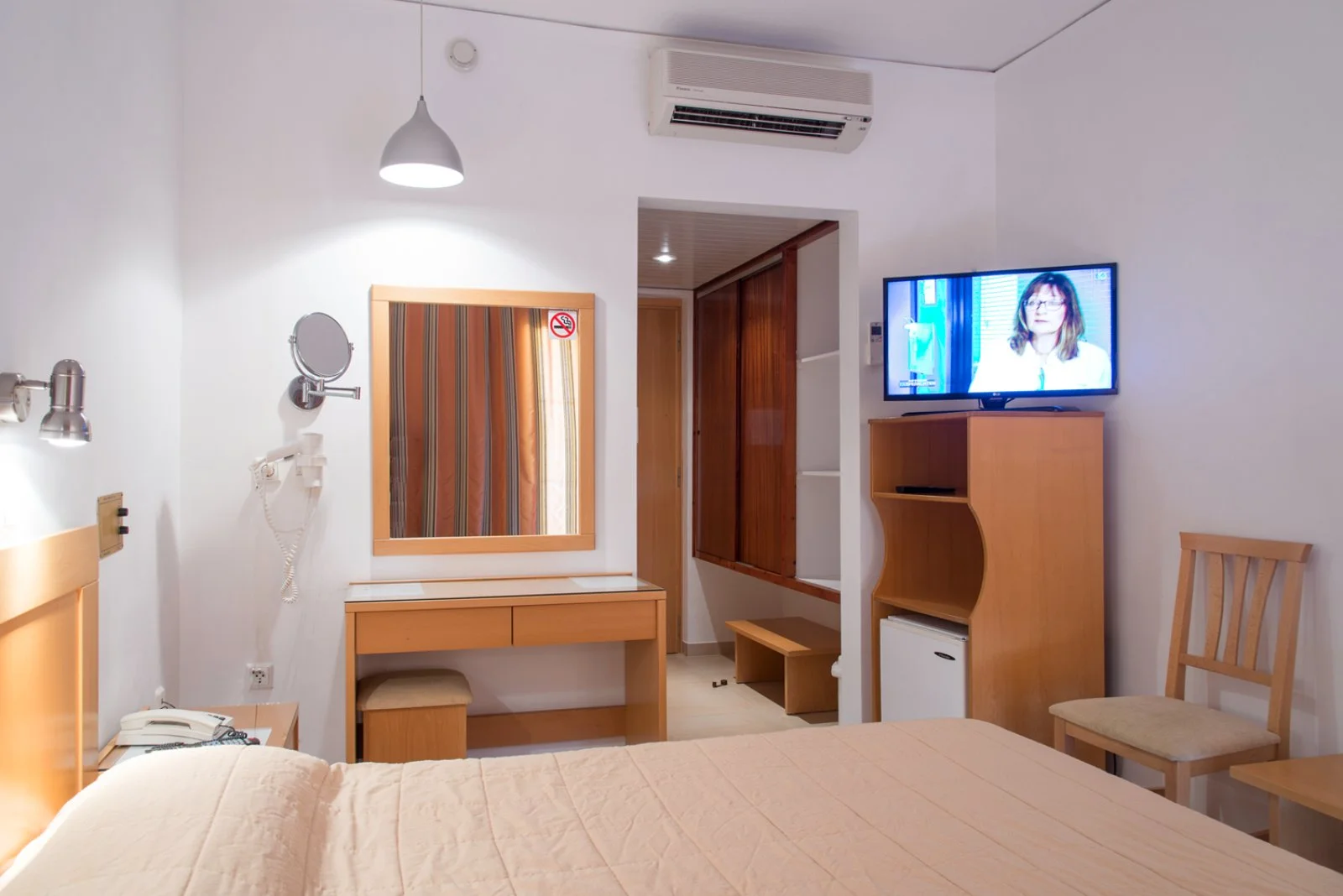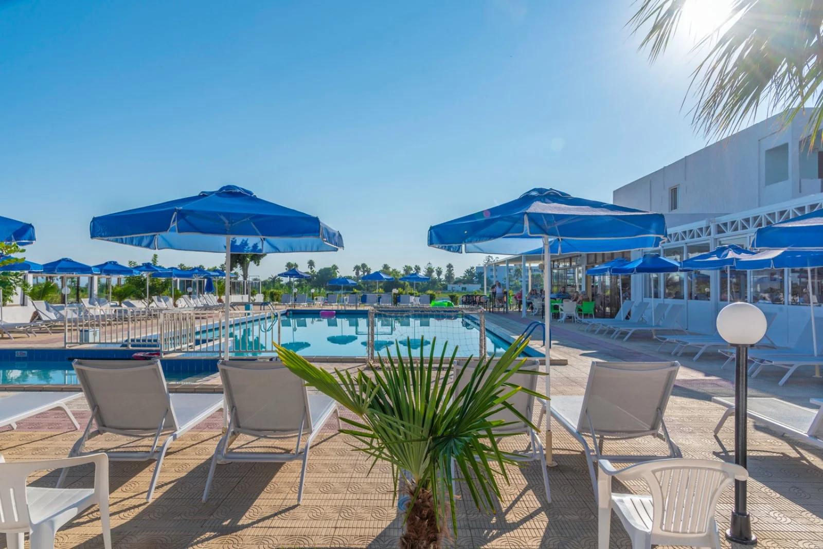 114 camere (18-20 m2) disposte in 2 edifici di 1 o 2 piani con servizi privati, asciugacapelli, aria condizionata, telefono, TV satellitare con alcuni canali italiani, connessione Wi-Fi, minifrigo e terrazza o balcone. A pagamento, cassetta di sicurezza.