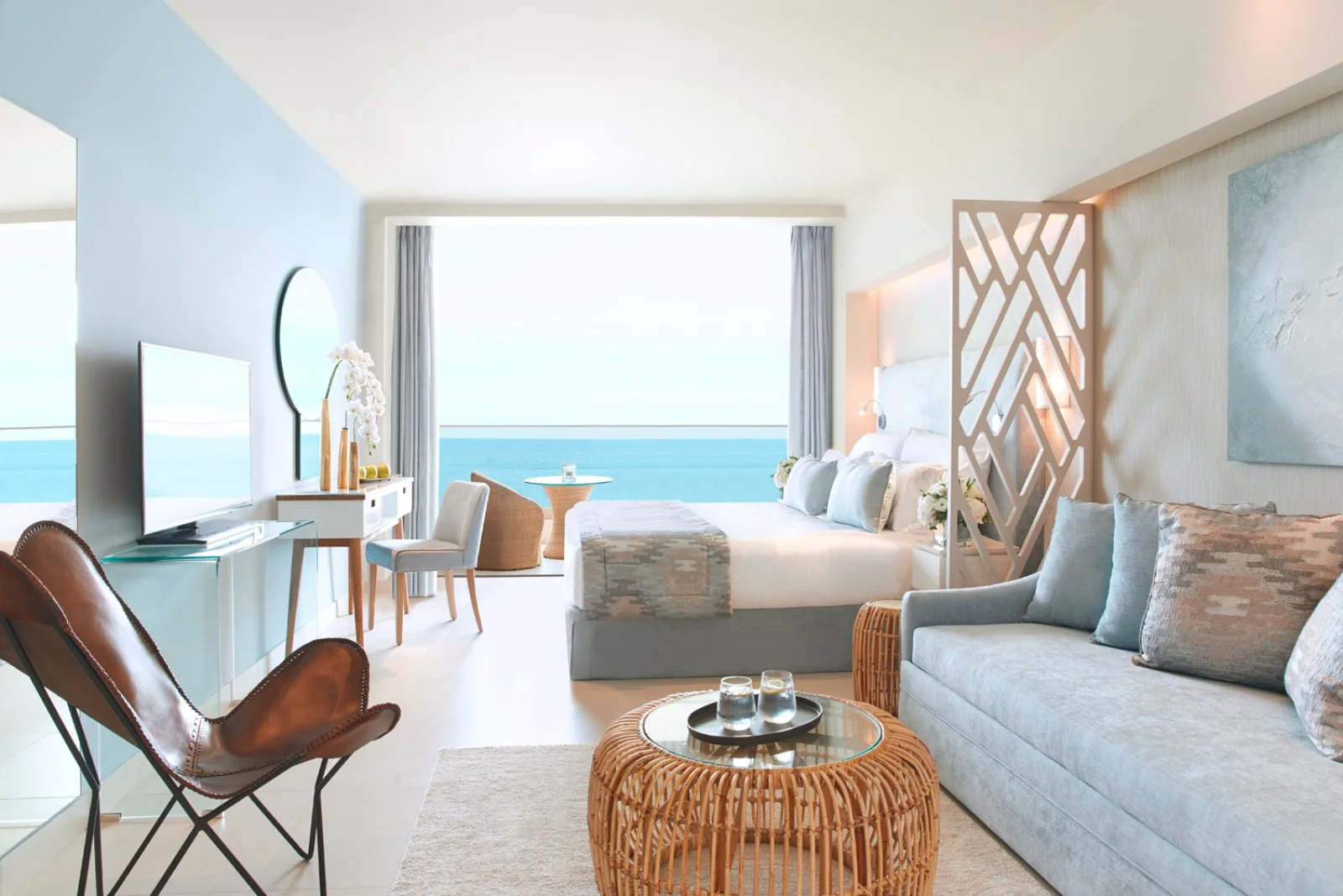 411 sistemazioni di diverse categorie dislocate in 2 diversi edifici che ospitano la maggior parte delle camere e suite, oltre ad un’area dedicata ai bungalow suite e alla zona Deluxe Collection, quest’ultima con servizi dedicati e privilegiati. Tutte le sistemazioni sono eleganti e arredate con uno stile lussuoso e contemporaneo, dotate di aria condizionata, Wi-Fi, Smart TV, macchina per la preparazione del caffè espresso, set per tè e caffè, minibar rifornito quotidianamente, asciugacapelli, accappatoio, ciabattine e cassetta di sicurezza.