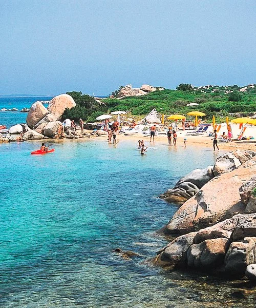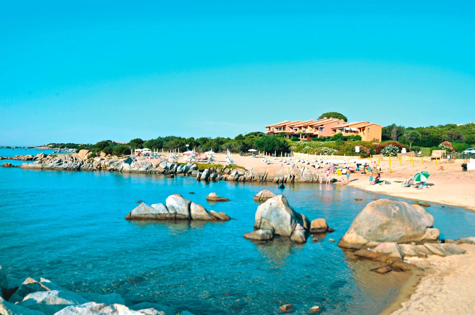 Graziose villette collegate tra loro da vialetti in pietra, verdi giardini e portici che si raggruppano intorno alla piazzetta dove sorge una suggestiva chiesetta e l’ufficio ricevimento. La zona è caratterizzata da un susseguirsi di piccole calette di sabbia bianca e rocce. Nella parte a mare più vicina alla struttura si trova la