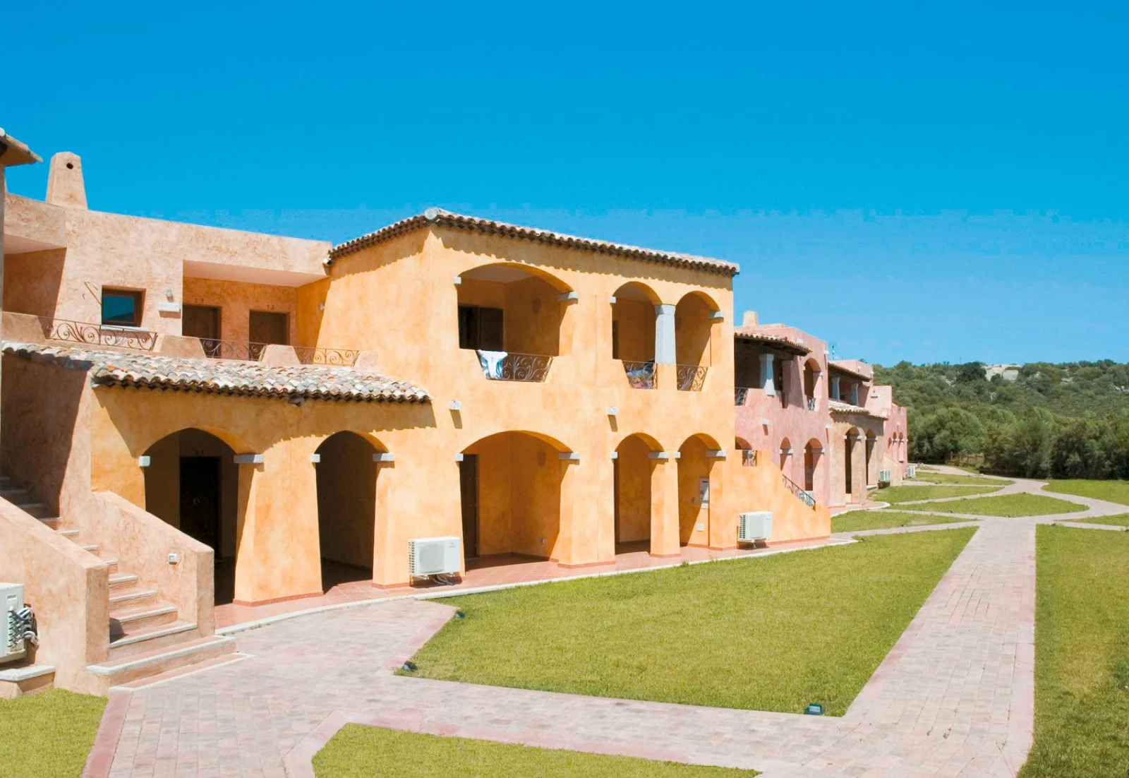 La struttura è composta da schiere di costruzioni collegate tra loro da vialetti in pietra, verdi giardini e portici che si raggruppano intorno alla piazzetta dove sorge una suggestiva chiesetta e l’ufficio ricevimento. La zona è caratterizzata da un susseguirsi di piccole calette di sabbia e rocce.
