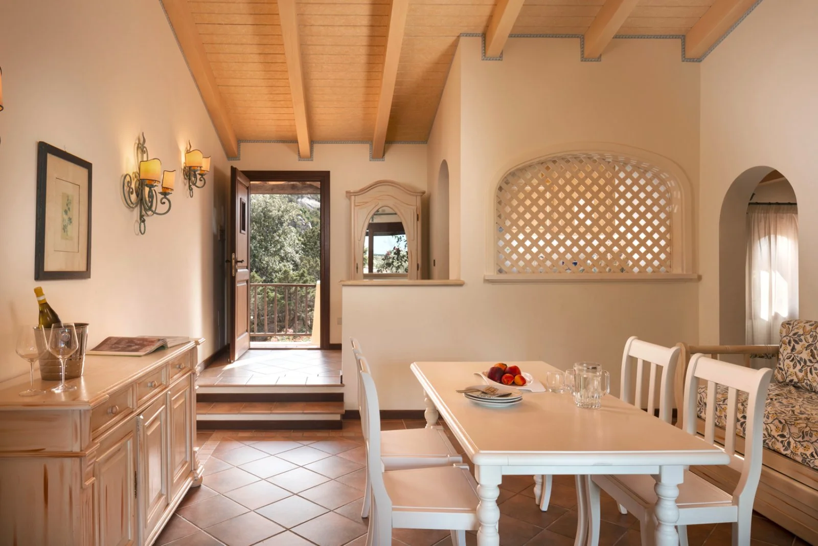 21, elegantemente rifiniti con i tipici arredi della Costa Smeralda, possono essere al primo piano con balcone vista mare o vista giardino, o al piano terra con patio. Sono dotati di soggiorno con angolo cottura, servizi privati e asciugacapelli, aria condizionata, tv, wi-fi (ad uso parziale). Si dividono in bilocale 4 letti con divano letto in soggiorno e camera matrimoniale; bilocali premium per 4 persone, con letto king size e lavastoviglie.