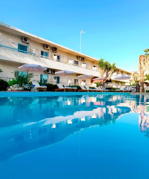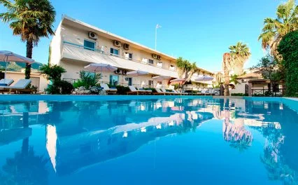 direttamente sul lungomare di Ipsos, località frequentatissima da giovani e giovanissimi di tutta Europa. Offre sistemazioni semplici ma funzionali e in linea con la sua categoria per una clientela