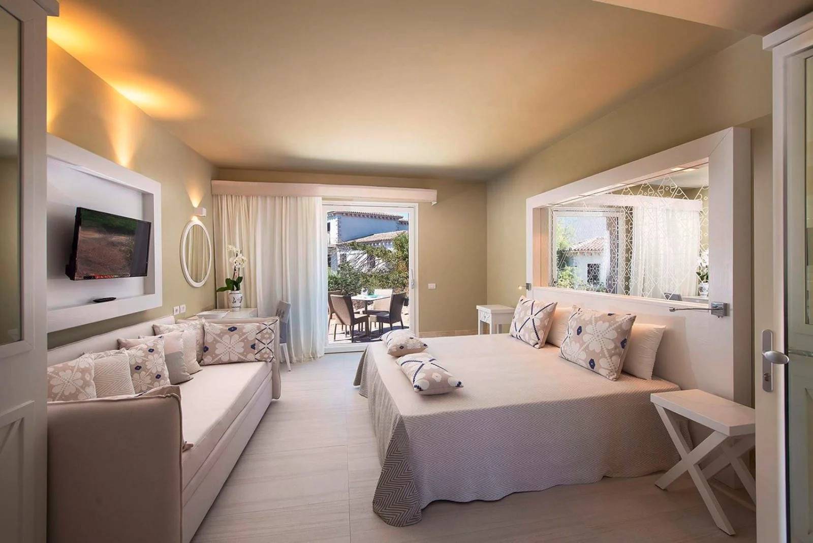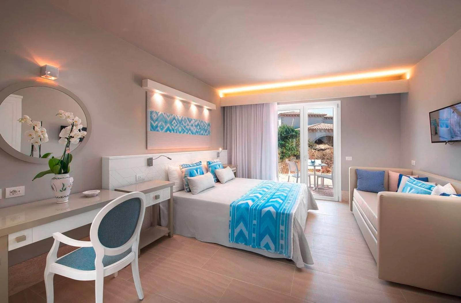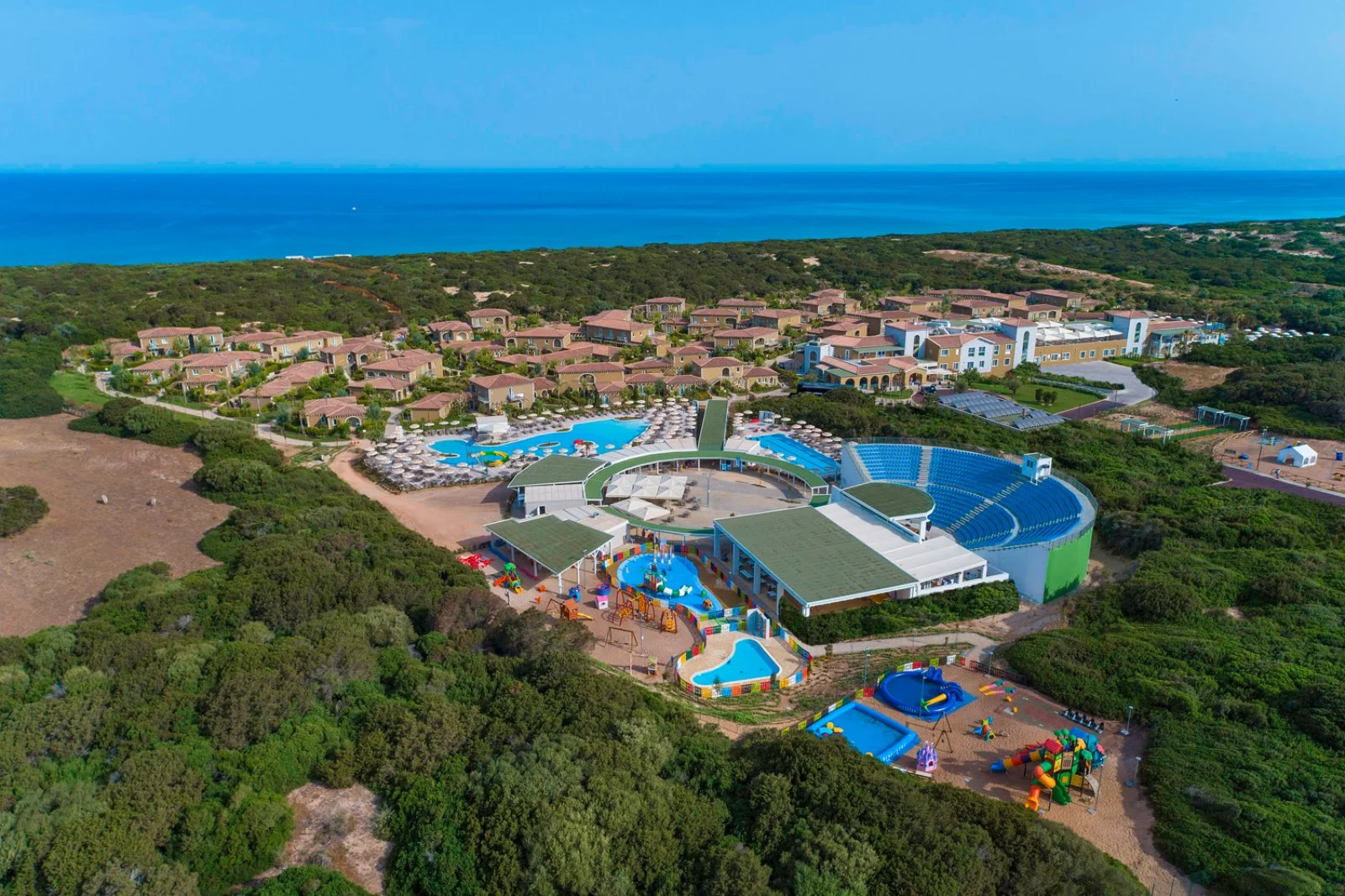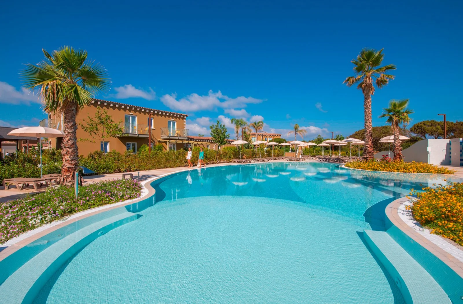 353, alcune ubicate al piano terra con o senza giardino altre al 1° piano con o senza balconcino; dispongono di servizi con asciugacapelli, aria condizionata, TV, Wi-Fi, minifrigo, macchina caffè espresso, bollitore con tè e tisane, cassetta di sicurezza. A pagamento: minibar. Le classic fino a 2 persone, al piano terra senza giardino o al 1° piano, alcune con balconcino oppure le classic garden, fino a 2 persone (culla non disponibile), al piano terra con giardino. Le superior, fino a 3 persone, al piano terra senza giardino o al 1° piano, alcune con balconcino oppure le superior garden al piano terra con giardino. Le junior suite, fino a 3 persone (culla non disponibile), con 2 ambienti alcune separati da porta, sono al piano terra con giardino o al 1° piano con balconcino; sono dotate anche di TV con canali a pagamento. Le family, minimo 3 persone+culla/massimo 4 persone (in alcune è possibile aggiungere un quinto letto), alcune con 2 ambienti e unico bagno, sono al piano terra senza giardino o al 1° piano con balconcino, le family garden al piano terra con giardino; entrambe sono dotate anche di TV con canali a pagamento anche per bambini e 2 teli mare personalizzati in omaggio. Le prestige sono suddivise in: doppie e triple (fino a 3 persone, culla non disponibile in tripla), family (minimo 3 persone+culla/massimo 4 persone) sono al piano terra o al 1° piano alcune con balconcino, terrace (fino a 3 persone, culla non disponibile) sono al 1° piano dell’edificio centrale con grande terrazzo arredato; sono dotate anche di TV con canali a pagamento, accappatoio in camera (dai 12 anni), 1 telo mare a persona (dai 3 anni) con cambio giornaliero, in spiaggia ombrellone più grande in zona centrale con 3 lettini, 1 piscina riservata con bar, area esclusiva al ristorante dal 21/6 al 13/9, area reception e check-in dedicati, 2 teli mare personalizzati in omaggio (solo nelle prestige family). Sono inoltre disponibili camere comunicanti, dog room classic, superior o family con giardino recintato dotato di cuccia e scodella.