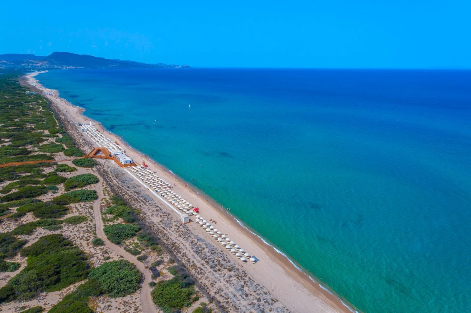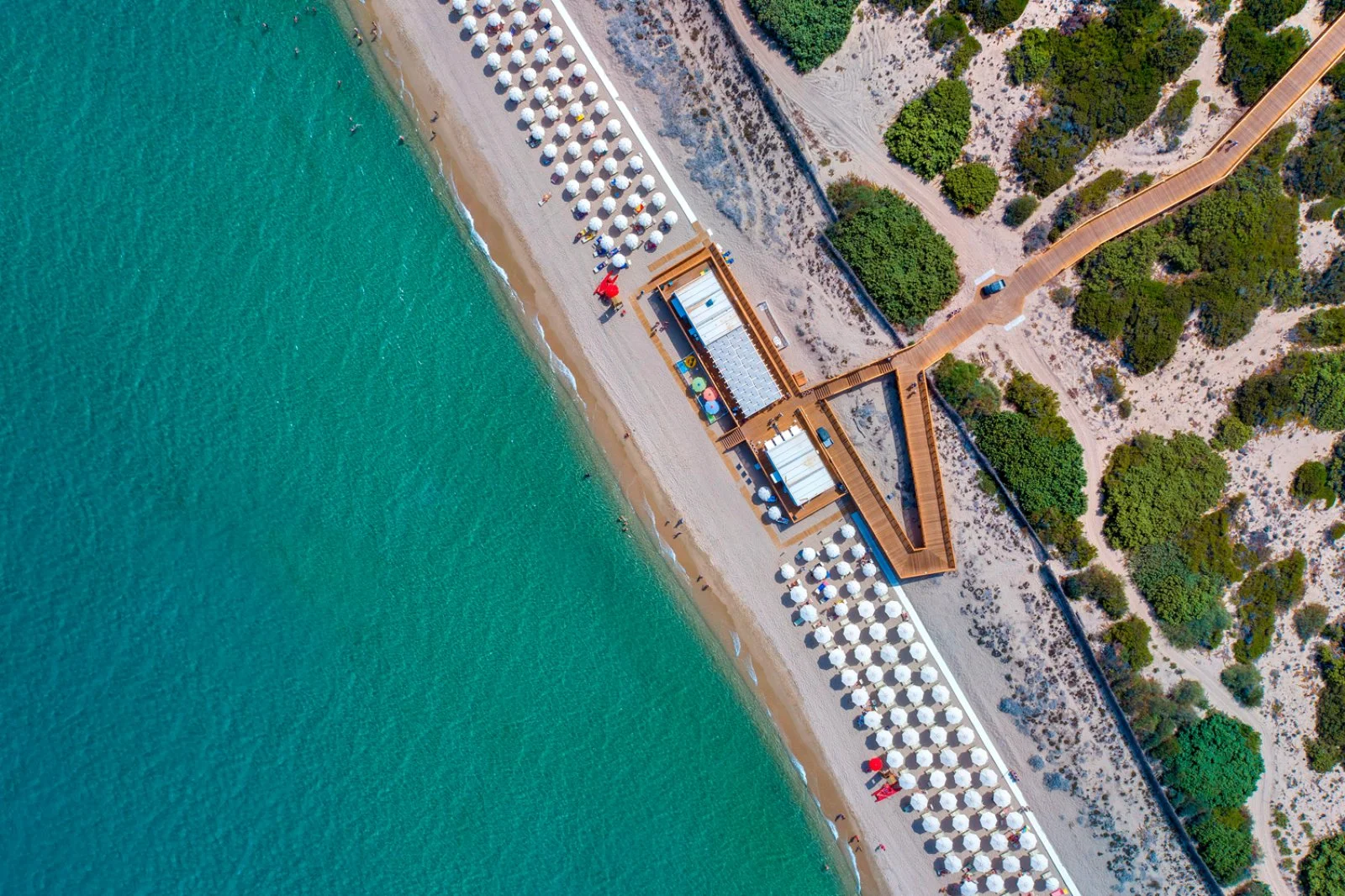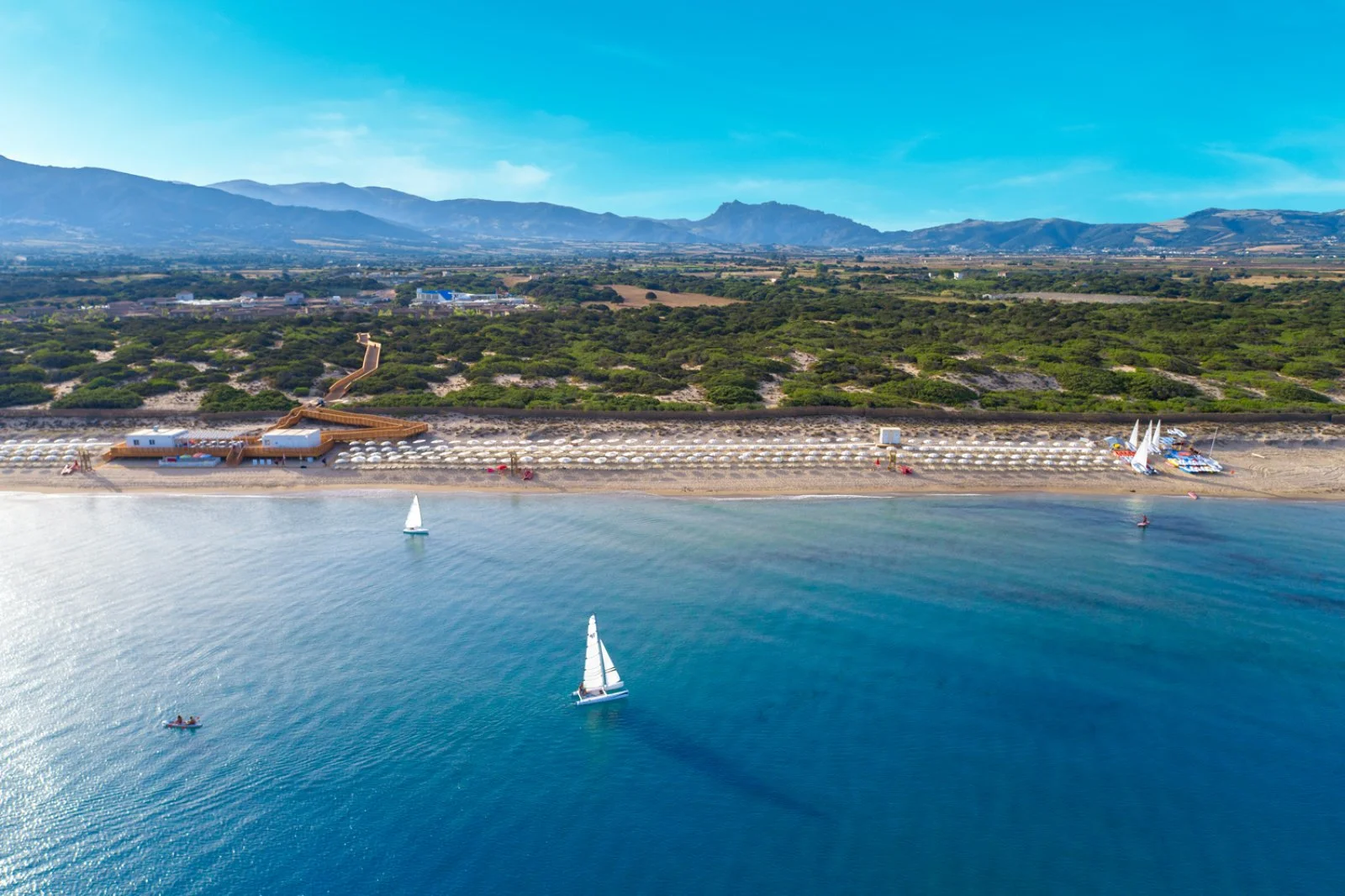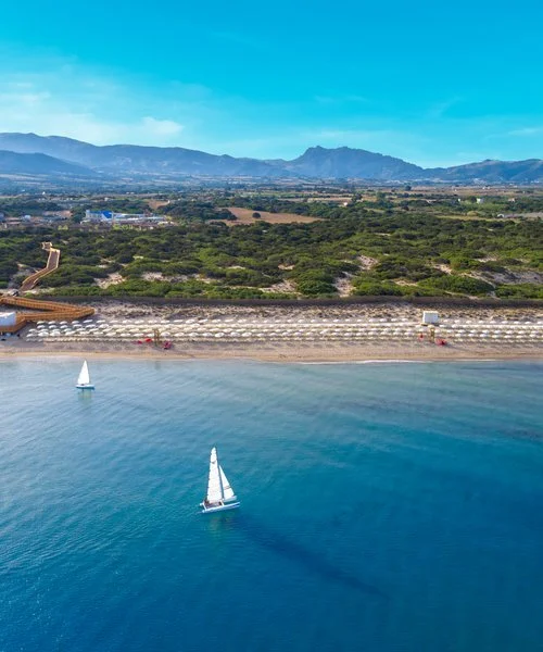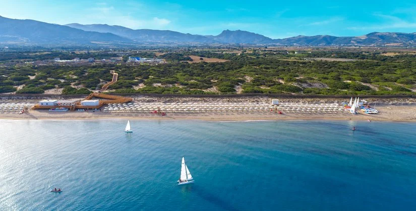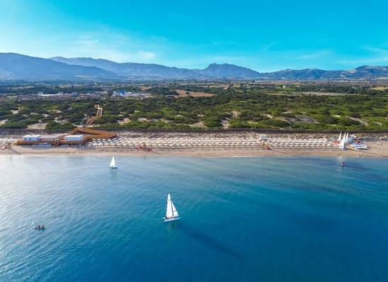 A 400 m dalla spiaggia privata e sabbiosa; inclusi 1 ombrellone e 2 lettini per camera dalla 2a fila. 1 piscina centrale con acquascivoli, 1 per il nuoto, 1 per bambini nel miniclub, 1 riservata per le camere prestige o in formula ultra inclusive. A pagamento: ombrelloni in 1a fila e assegnati dalla 2a fila.