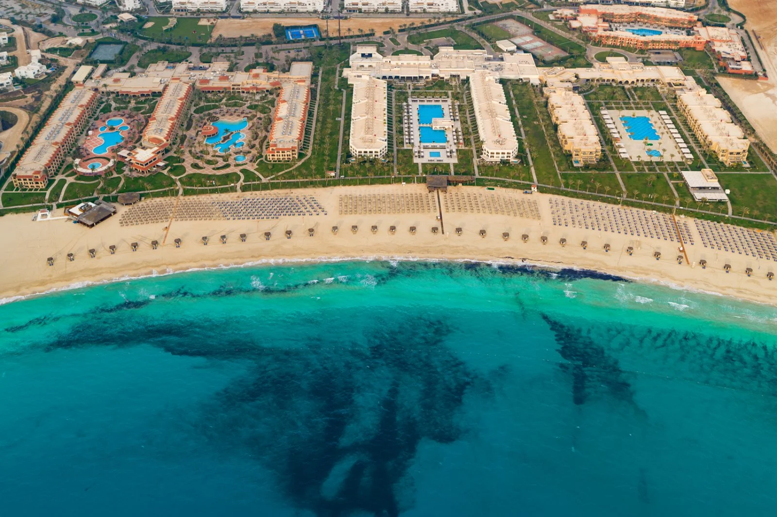 dai colori tenui e in stile mediterraneo. Il complesso propone numerose soluzioni di recentissima costruzione, tutte affacciate sulla splendida Almaza Bay, in un contesto balneare di rara bellezza. La vera protagonista è ovviamente la spiaggia: davanti a voi si apre un’infinita distesa di sabbia bianchissima e soffice che si