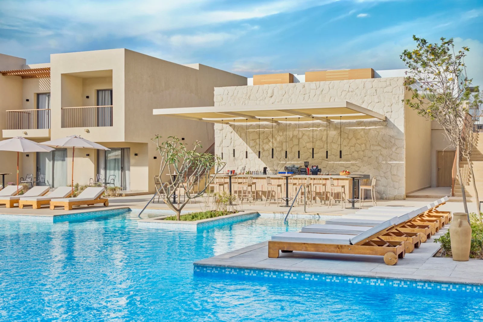 Struttura nuovissima, inaugurata nel 2025, all’interno del complesso più grande e rinomato di tutta l’area di Marsa Matrouh, una vera icona per il mercato italiano, presente qui in modo dominante da molti anni. Almaza Blue si trova subito dietro la reception del Almaza Bay e si compone di 150 camere superior, tutte situate intorno alla grande piscina principale e immerse in verdi giardini, in questo ambiente dai colori tenui e in stile mediterraneo.