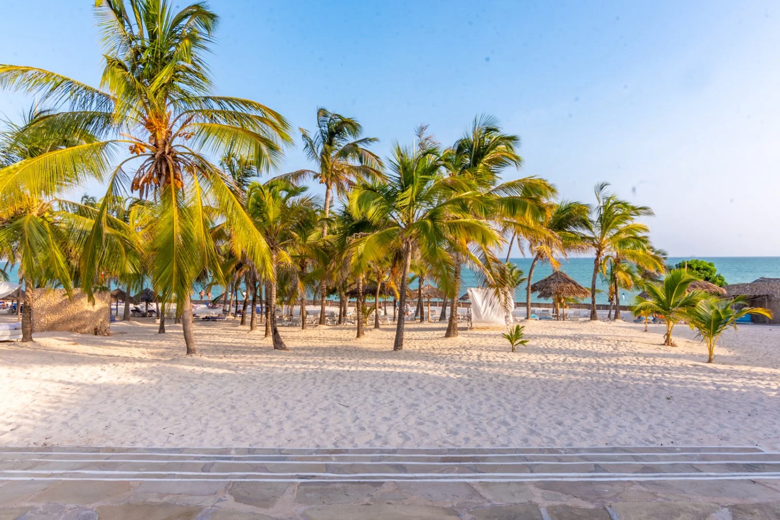di sabbia bianca, si estende per oltre 9 km di cui 90 m di fronte all’hotel. È attrezzata con lettini e teli mare a disposizione dei clienti. Le palme che costeggiano la spiaggia garantiscono ampie zone d’ombra. La zona è soggetta al fenomeno delle maree che si susseguono ogni sei ore garantendo facile balneabilità durante buona parte della giornata.