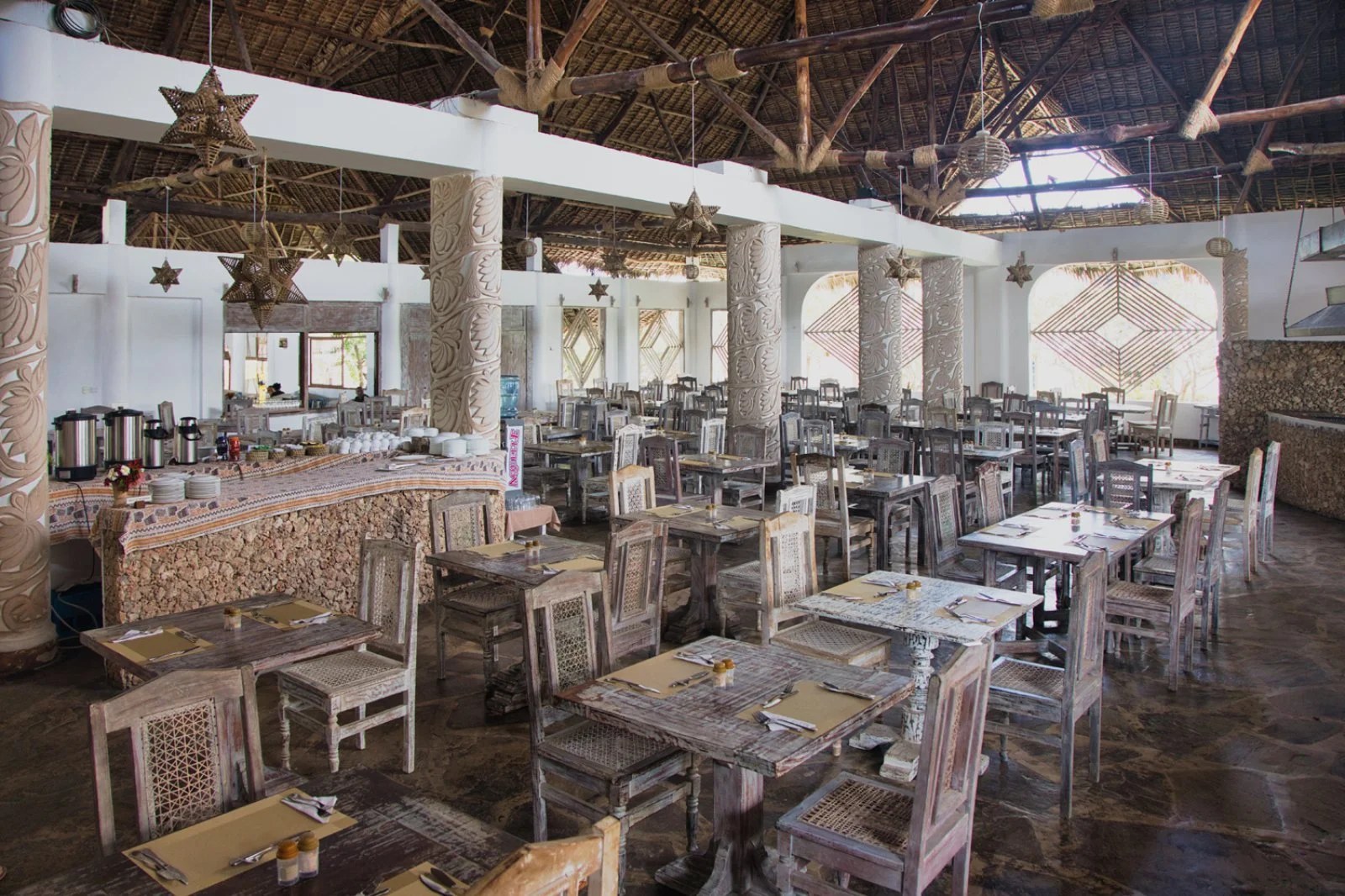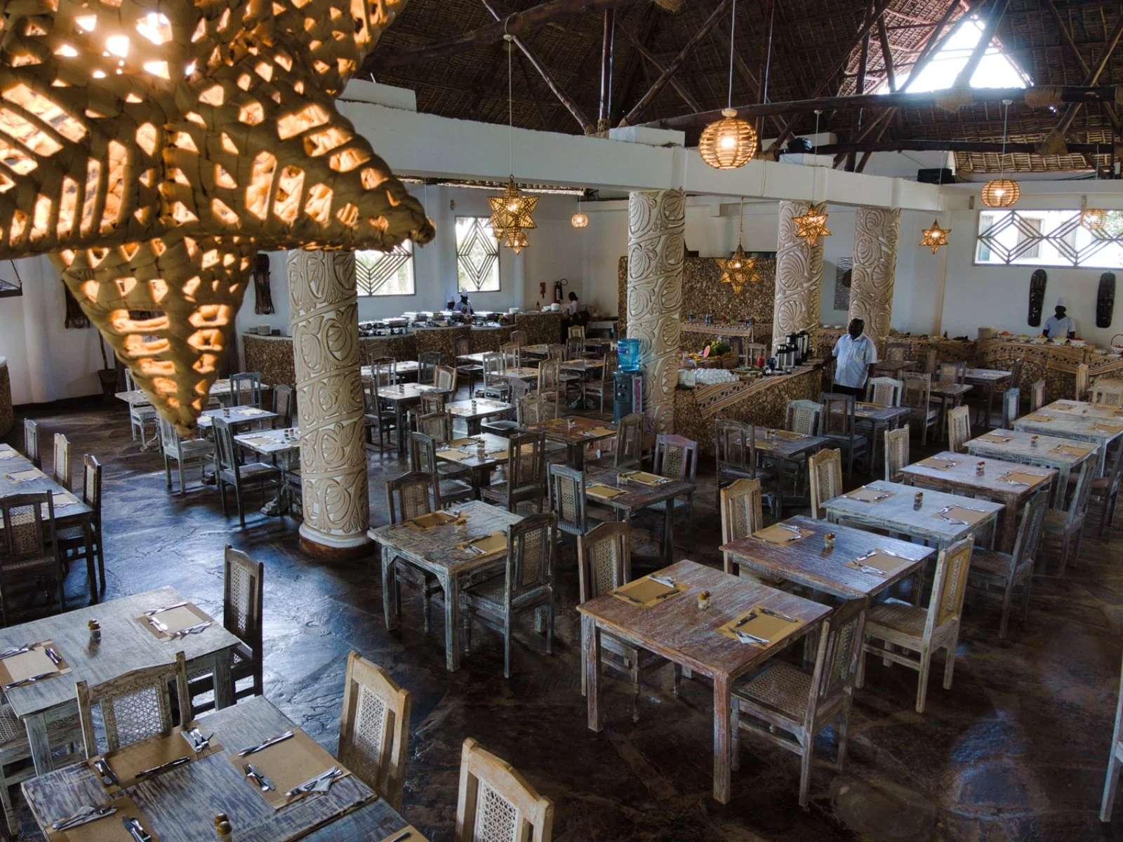 1 ristorante a buffet, che organizza una volta a settimana cena tematica con specialità della cucina Swahili e 2 bar di cui uno presso la spiaggia. A pagamento su prenotazione, ristorante à la carte che propone cene a lume di candela servite in spiaggia.
