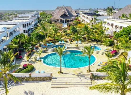 2 piscine con acqua di mare, di cui una per bambini, attrezzate con ombrelloni, lettini e teli mare a disposizione dei clienti. Sala tv, biliardo, biliardino e connessione wi-fi gratuita nelle aree comuni. A pagamento, negozio di souvenir, parruccheria, ufficio di cambio valuta, lavanderia e servizio medico esterno (su richiesta) e, nelle vicinanze, spa con massaggi, casinò e discoteca. Su richiesta, l’hotel accetta animali di piccola taglia (fino a 10 kg) nelle aree comuni aperte (no ristorante e bar principale) e in spiaggia (con museruola e guinzaglio). Lo staff organizza corsi di lingua swahili e cucina locale, corsi di danza, spettacoli serali con masai, Giriama, acrobati e cabaret. Una sera a settimana si organizza il Beach Party.