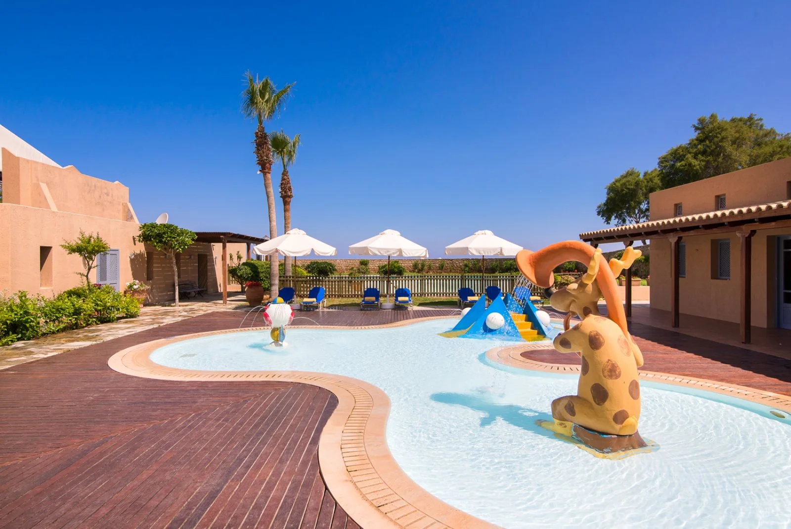 Si affaccia direttamente sulla spiaggia sabbiosa. Dispone di 5 piscine di cui 1 olimpionica, 1 riservata agli adulti, 1 coperta e 2 per bambini. Uso gratuito di lettini, ombrelloni e teli mare sia in piscina che in spiaggia, fino a esaurimento.