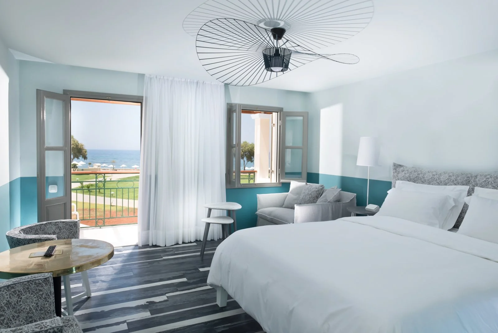 392, tutte dotate di asciugacapelli, ciabattine, telefono, TV satellitare, aria condizionata (centralizzata in corpo centrale, con controllo individuale nei bungalow), Wi-Fi, cassetta di sicurezza, balcone o veranda. Le doppie vista giardino/montagna, occupazione massima 2 adulti e 1 bambin, e le spaziose family suite vista giardino/montagna max 4 adulti si trovano nel corpo centrale o nei bungalow; i bungalow vista mare o fronte mare adatti a 2 adulti e 1 bambino e le family bungalow suite vista mare (max 4 adulti) si trovano nell’area village, e si distinguono per uno stile più tradizionale. Nel corpo centrale si trovano, inoltre, le deluxe vista mare e luxury vista mare entrambe rinnovate con un design moderno e con occupazione massima di 2 adulti.