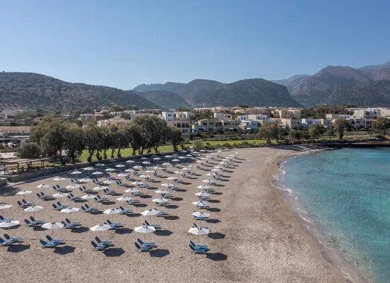 In posizione tranquilla sulla bella baia di Sissi, a circa 1 km dall'omonimo villaggio, 42 km dall'aeroporto di Heraklion e 189 da quello di Chania. Fermata bus di linea di fronte all’hotel. Si estende su una vasta area ed è costruita come un tipico villaggio cretese, con corpo centrale e vari nuclei di bungalow a 1 o 2 piani che si susseguono tra stradine in pietra, archi e gradinate.