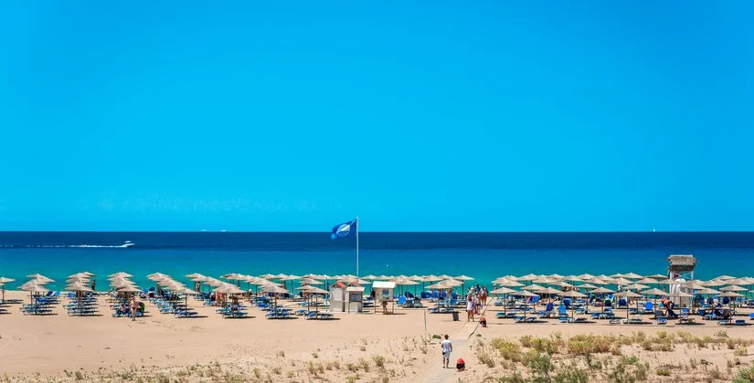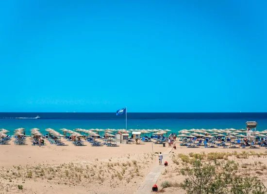 La lunga spiaggia di sabbia dorata si estende per 9 km ed è proprio di fronte all’hotel. Dispone di 4 piscine di cui una per bambini e una con scivoli. Uso di lettini e ombrelloni gratuito sia in piscina che in spiaggia. Teli mare a pagamento.