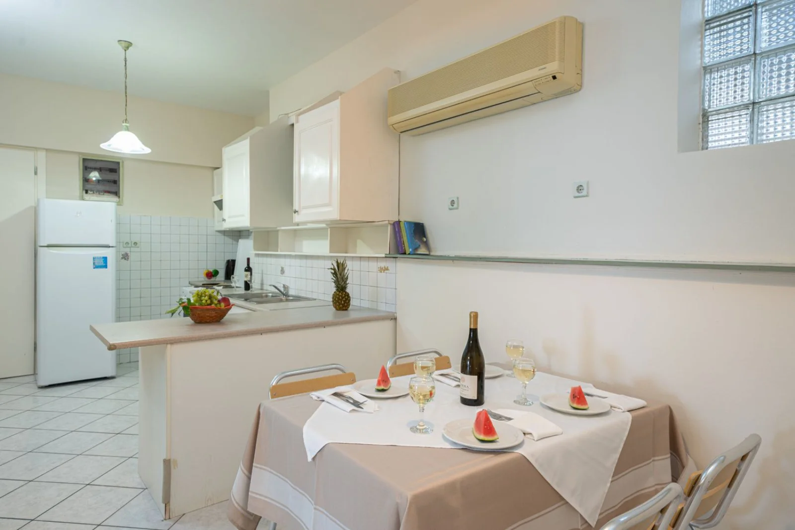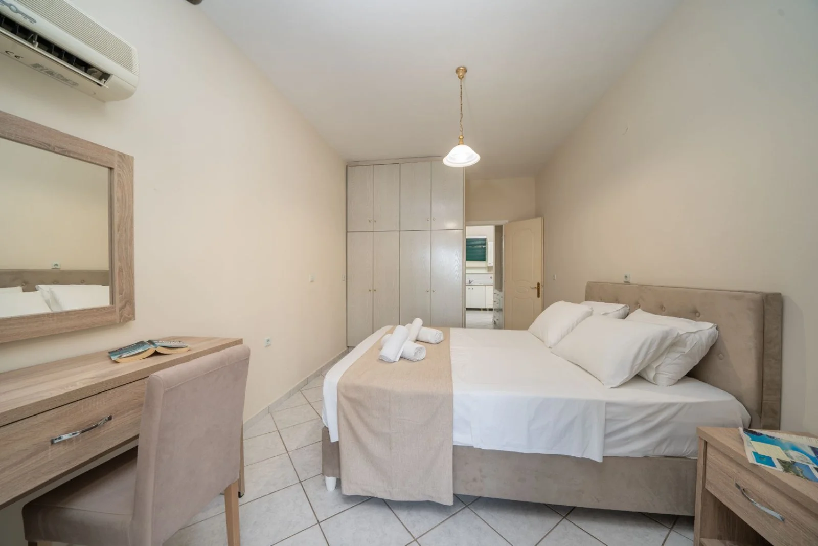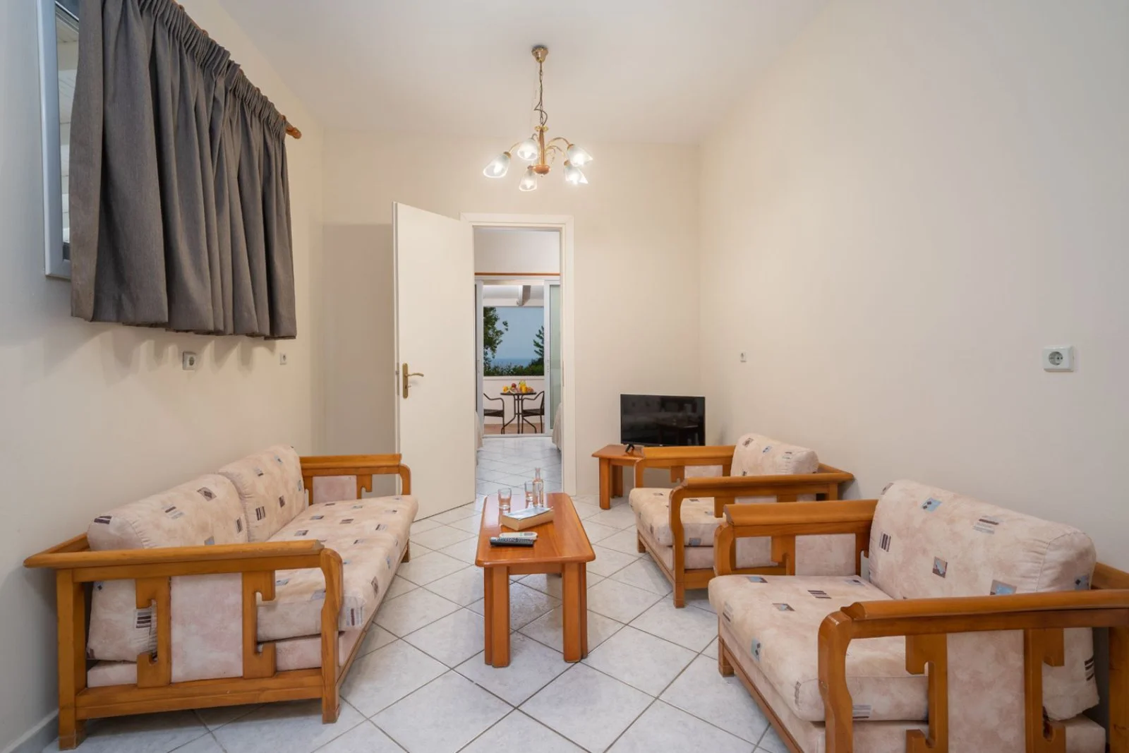 spiaggia sabbiosa di San Thomas a 500 m, non attrezzata. La spiaggia attrezzata più vicina è Trapezaki Beach, a 5 km, con lettini e ombrelloni a pagamento. Teli mare disponibili con supplemento.