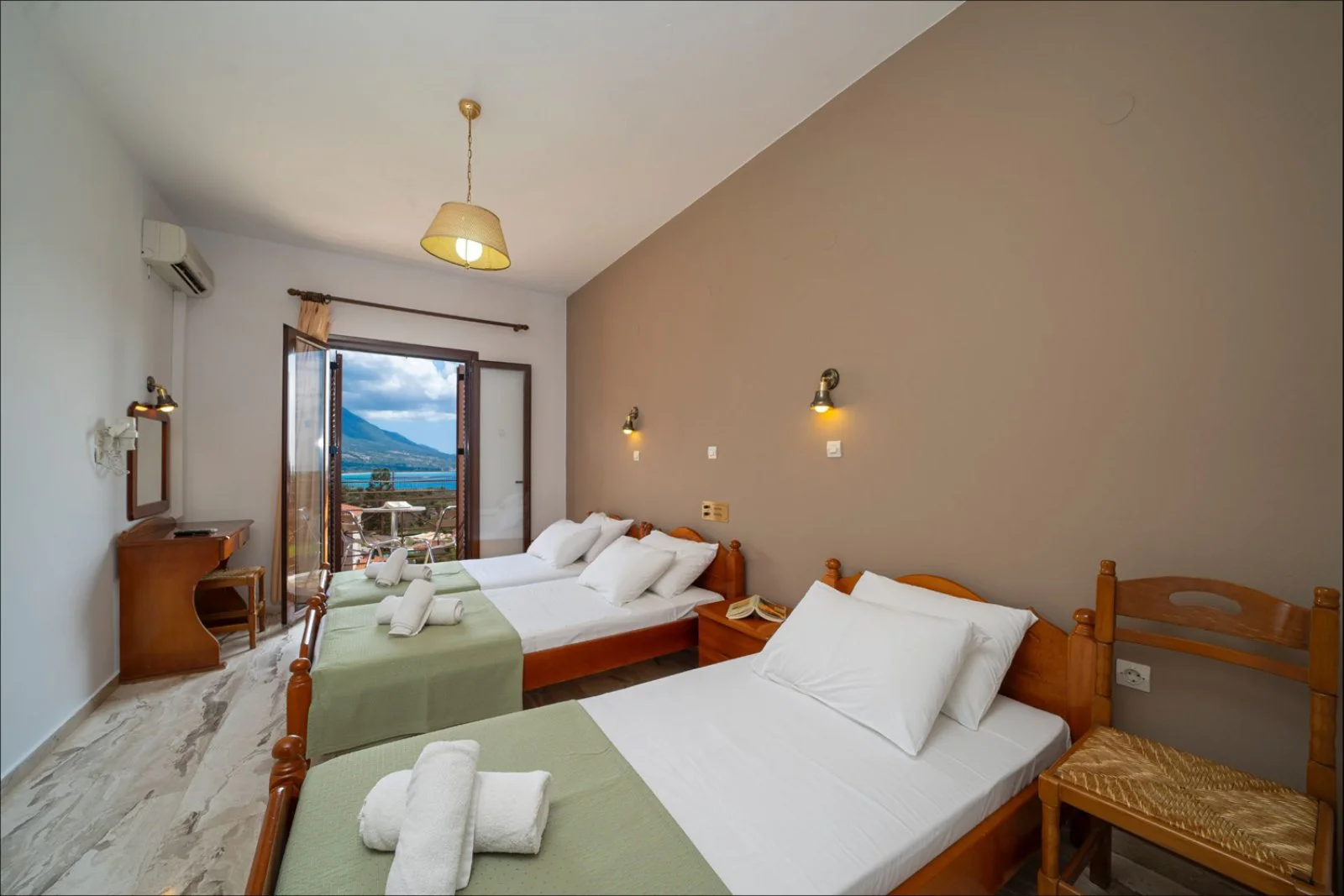 75 camere (18 m²) disposte su 3 piani, con balcone o veranda, servizi privati, aria condizionata, asciugacapelli, TV, Wi-Fi, minifrigo. A pagamento, cassetta di sicurezza.