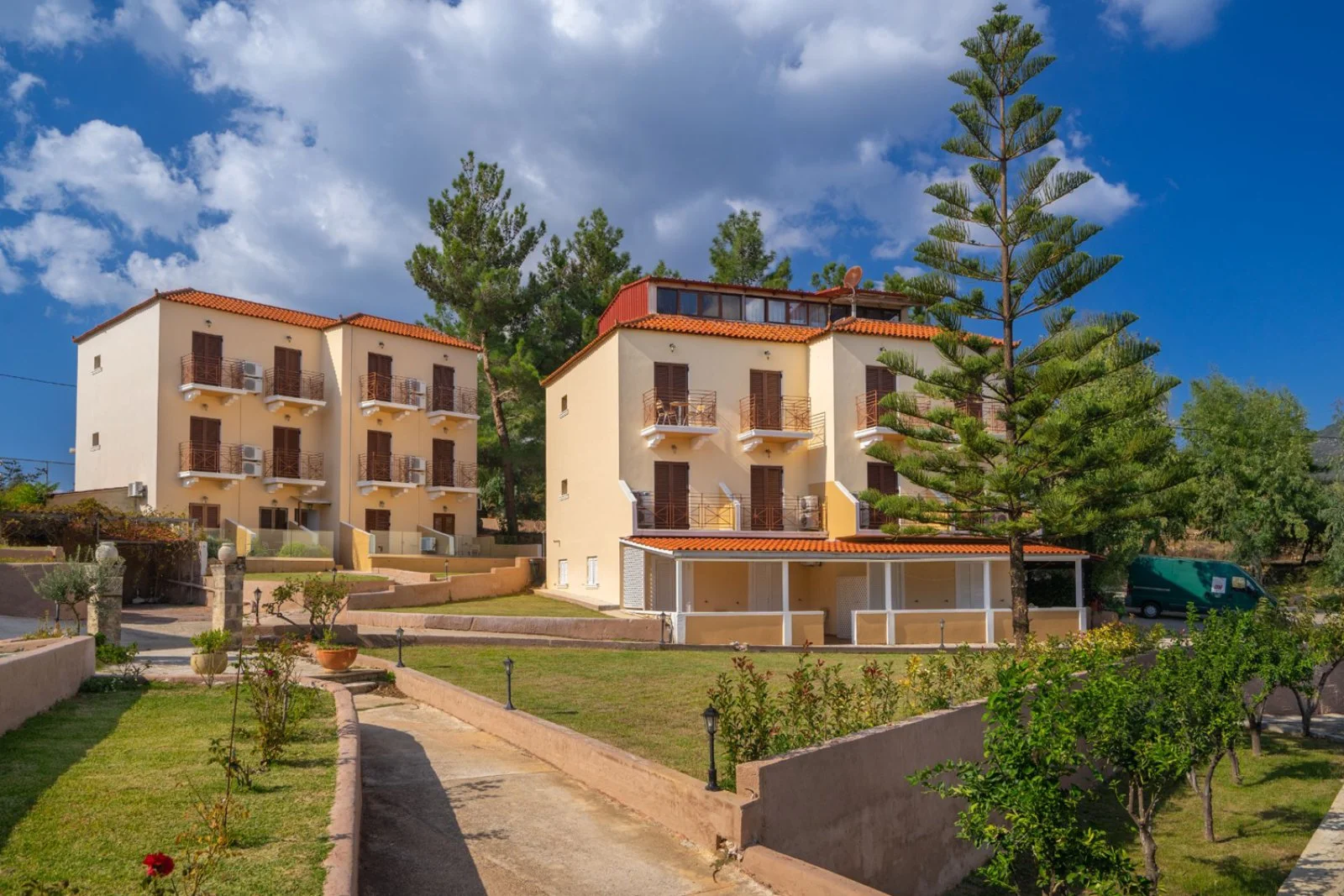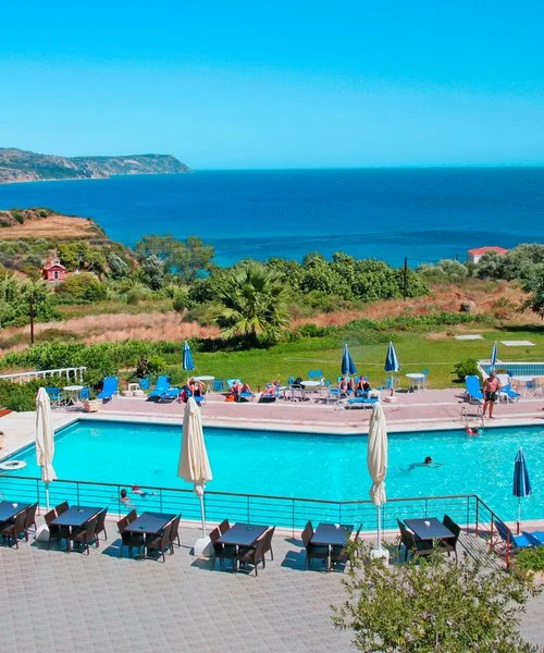 a breve distanza dalla bella spiaggia sabbiosa di San Thomas, raggiungibile tramite un comodo sentiero, senza ombrelloni né lettini ma dotata di un grazioso snack bar. La posizione dell’hotel è leggermente decentrata rispetto alla zona residenziale e al centro città e questo gli garantisce un contesto naturale tutto intorno pressoché intatto, molto suggestivo e rilassante. Karavados è anche una località particolarmente strategica per raggiungere tutte le principali attrazioni dell’isola. A una ventina di chilometri verso sud si trova la cittadina di Kato Katelios, antico porto di pescatori e divertente centro balneare in continua evoluzione. Poco oltre si trova Skala, con la sua lunga e famosa spiaggia di sabbia chiara e fine, circondata da una meravigliosa pineta. Spingendosi verso nord, invece, si possono raggiungere in poco più di mezz'oretta le meravigliose spiagge di Mirthos e di Petani, vere eccellenze balneari di Cefalonia. La struttura rappresenta dunque un ottimo punto d'appoggio per esplorare l'isola in tutti i suoi angoli! Con il conveniente noleggio auto di Eden raggiungerete inoltre in meno di un’ora i porti di Sami e Poros che permettono collegamenti con la vicina isola di Itaca, imperdibile per una escursione in giornata con visita alle sue spiagge formidabili e poco frequentate.