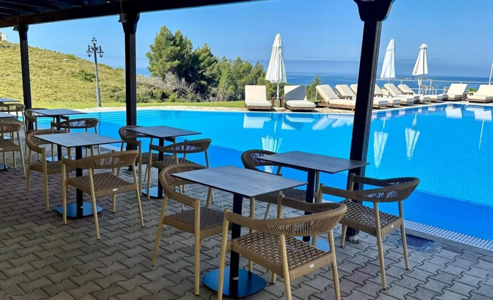 Gradevole complesso situato sulle collinette di Lassi, il cui stile architettonico ricorda quello di un villaggio tradizionale che si sviluppa attorno all’area piscina. Data la posizione rialzata,