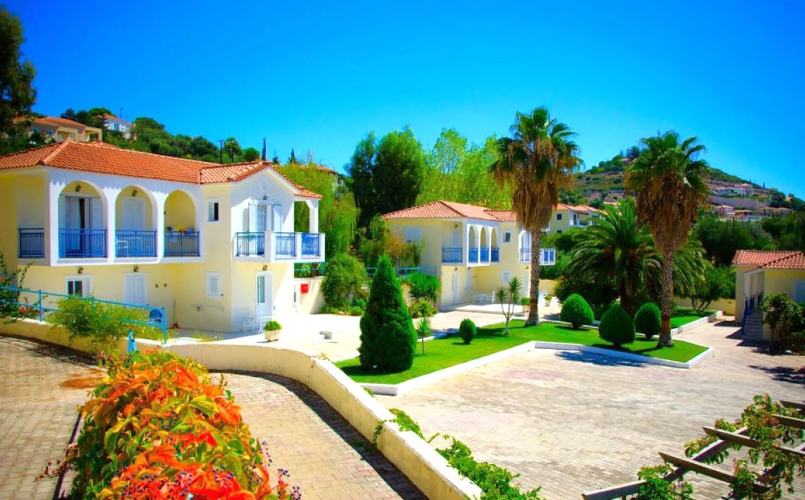 Gradevole complesso situato sulle collinette di Lassi, il cui stile architettonico ricorda quello di un villaggio tradizionale che si sviluppa attorno all’area piscina. Data la posizione rialzata, gode di una spettacolare vista mare.