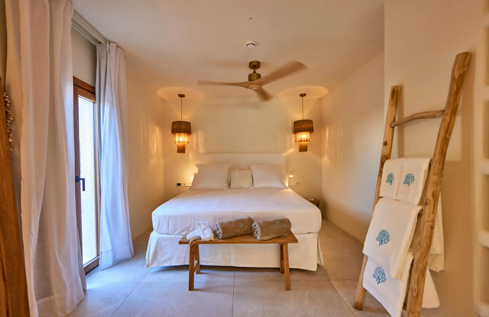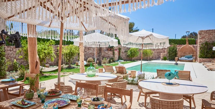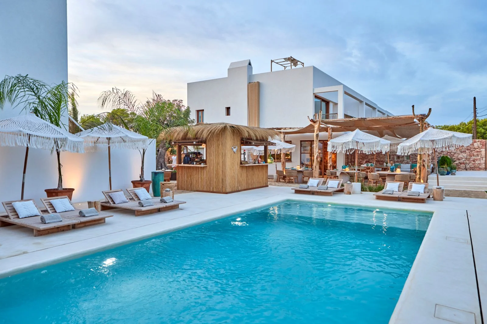 il lusso è nella semplicità, così come sono semplici le linee che caratterizzano l’intero complesso dove gli edifici sono imbiancati a calce e circondati da ulivi e bouganville. La struttura è nuovissima, inaugurata nel 2024, ed è un vero rifugio di lusso, lontano dal caos della quotidianità e con servizi davvero esclusivi come la possibilità di avere una Mehari per esplorare l’isola, un tour in Llaut (la tipica imbarcazione dei pescatori payesi) o una passeggiata a cavallo sulla spiaggia…insomma…non un hotel ma una vera a propria avventura esclusiva e raffinata!