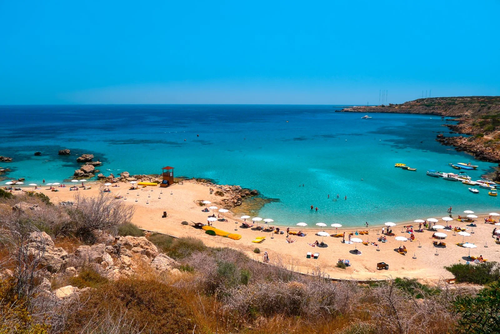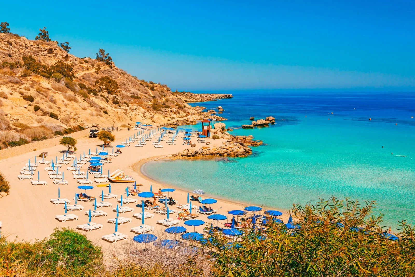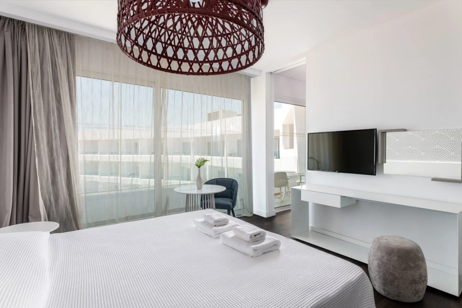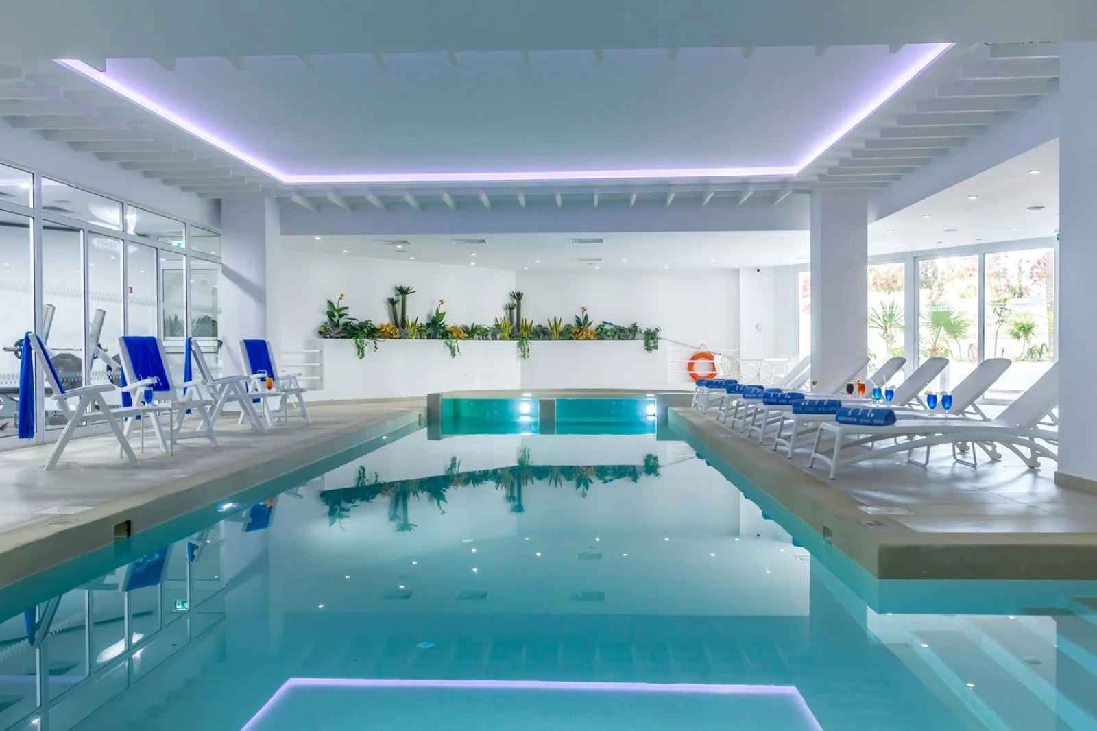 Sicuramente la proposta più eclettica della programmazione! Già all’esterno questo grande hotel internazionale attira l’attenzione per il suo imponente ingresso piramidale che, una volta varcata la soglia, rivela un design davvero originale, iniziando dalla hall ampia e ariosa da cui pende uno scenografico lampadario. Lo stile che caratterizza tanto gli ambienti comuni quanto le camere è il bianco quasi accecante delle pareti su cui spiccano dettagli e arredi coloratissimi, che donano vivacità all’elegante minimalismo che contraddistingue il Margadina. Le camere sono curate e ben tenute, in particolar modo le superior che sono state rinnovate nel 2018 assieme a molte delle aree comuni. Una folta e rigogliosa vegetazione incornicia le aree esterne, dal dehor del ristorante alla terrazza dell’elegante e sofisticato Allayla chillout bar aperto anche al pubblico, per cenare o sorseggiare un aperitivo immersi quasi in una piccola foresta. Anche la piscina è un tranquillo angolo di paradiso in cui rilassarsi all’ombra dei bianchissimi gazebi o delle palme, mentre i più esigenti potranno viziarsi nell’area benessere con spa, piscina e idromassaggio interni. Un breve sentiero pedonale parte dall’hotel e conduce in pochi passi alla bella spiaggia attrezzata di Limanaki, con acque dai colori cristallini. Sul lato ovest il porticciolo di Ayia Napa offre un paio di ottime taverne di pesce, mentre passeggiando a lungo verso est e superando la spiaggia di Glyki Nero potrete arrivare fino a una bassa scogliera, che nasconde numerose grotte e il suggestivo Bridge of Lovers, un arco di roccia molto fotogenico! Si tratta dunque della sistemazione giusta per coppie che vogliono concedersi una vacanza con tutti i comfort e al contempo a poca distanza dal centro di Ayia Napa, dove trascorrere qualche serata facendo shopping o a cena in uno dei bei ristoranti, come ad esempio il Sage con cucina fusion.